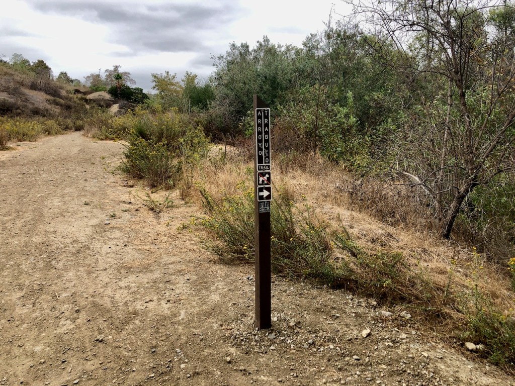 I came to a sign for Arroyo Trabuco Trail. I was actually on West Arroyo Trabuco Trail, and this sign pointed the way to the trail, along the other side of the creek.