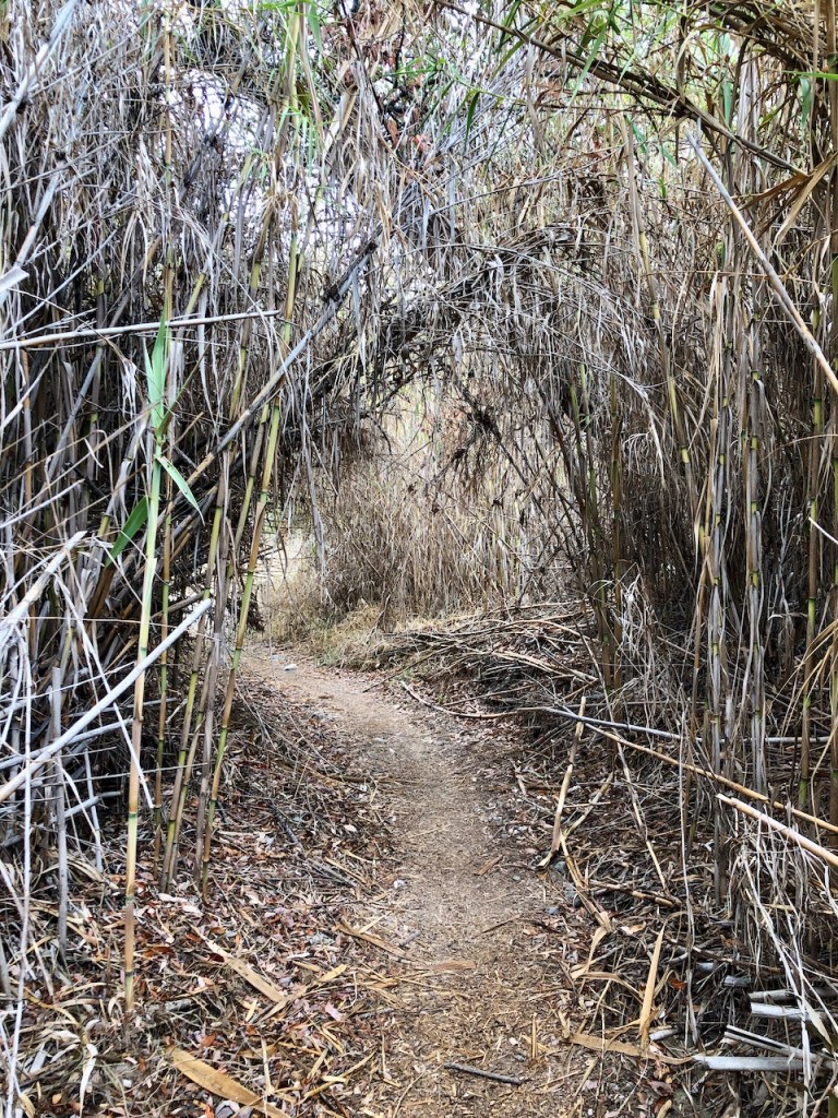 The cut-over trail seemed to meander through tall brush and reeds. It was some of the thickest bamboo I had been within yet in Orange County.