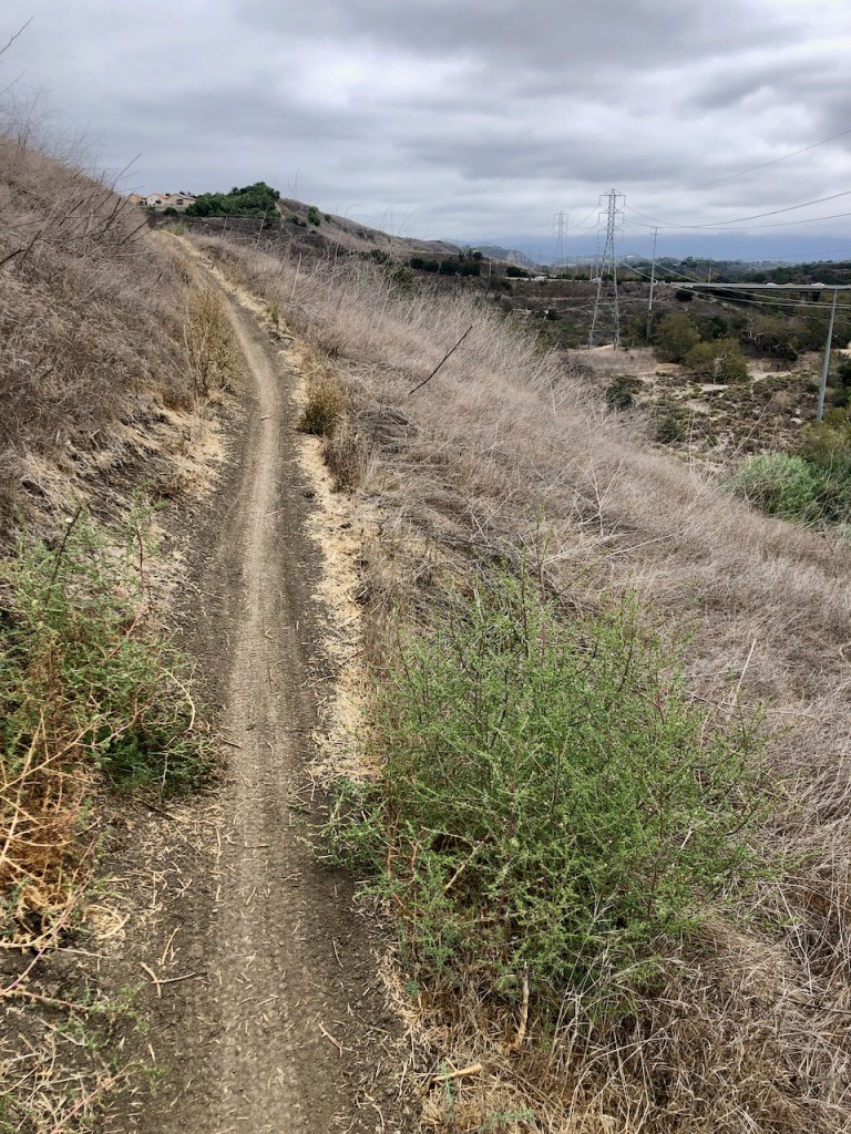 I had hiked on Arroyo Trabuco Trail in the past, via the Cox Sports Park. The parking is free there, and there are restrooms, which make it a convenient option for reaching the trail. However, in order to reach the trail, you must descend down a wide fire road beneath power lines the entire way.