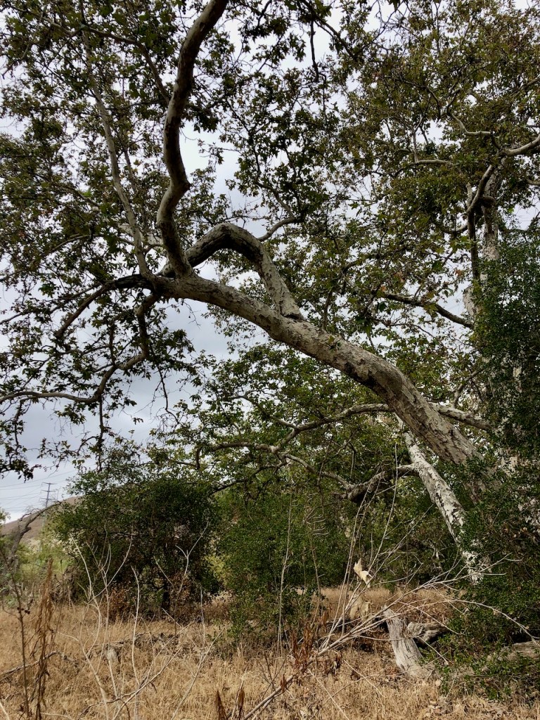 The narrow sliver of trail began to climb the ridge a ways, before dropping back down through a grove of Sycamore and Oak Trees.