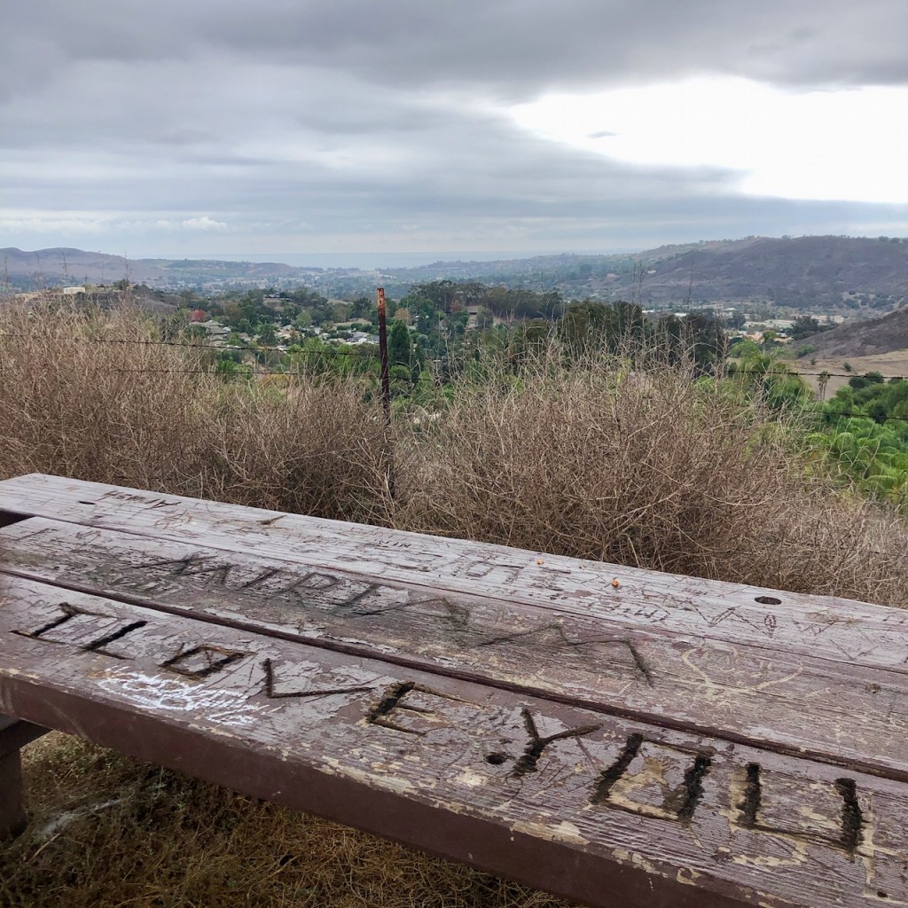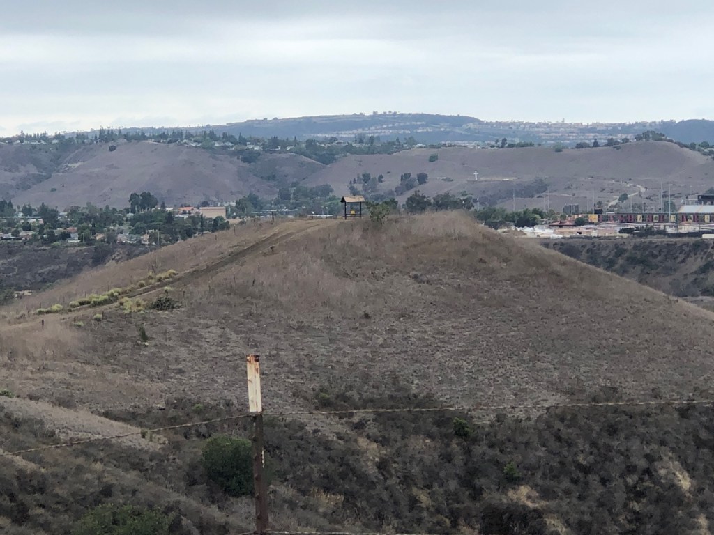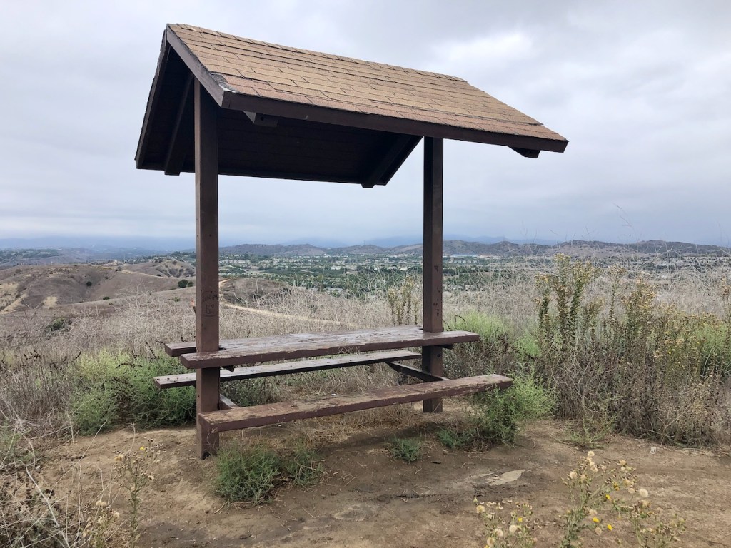 I can spot some of the overlooks, or “observation points.” There are shaded picnic tables and benches at each of them. This is the same type of structure I found throughout my hike on Catalina Island.