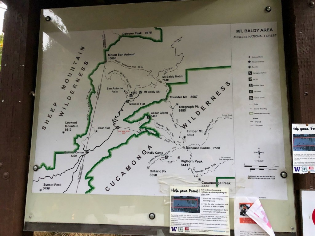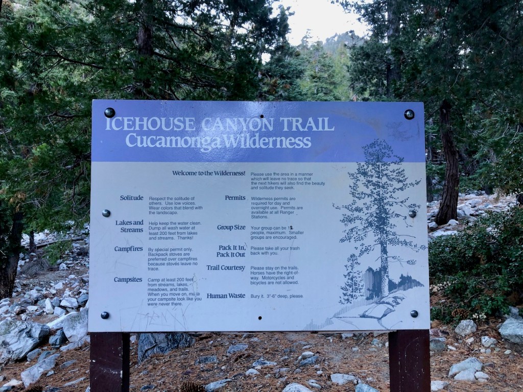 You begin the hike at Icehouse Canyon trailhead, just off Mt Baldy Road. This trailhead is the gateway for several other hikes: The Three T’s Hike, Cucamonga Peak, and Icehouse Saddle. There is a small parking lot which begins to fill up by 6am. When you arrive be sure to sign the trail register at the trailhead. This lets rangers know how many people are out there, should they need to evacuate people for some reason.