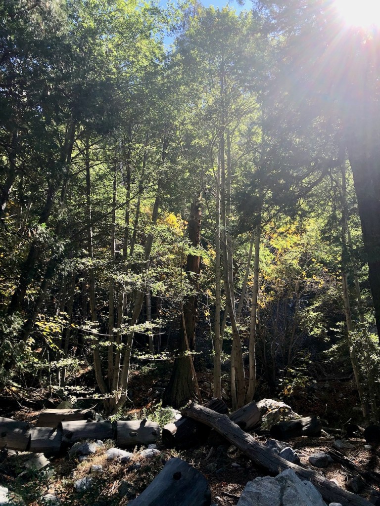 I would pass a beautiful campground, on the way back, that I had not seen on the way up. It was tucked within the trees, just below the peak. I made a mental note that I would stay there next time I come to Ontario Peak.