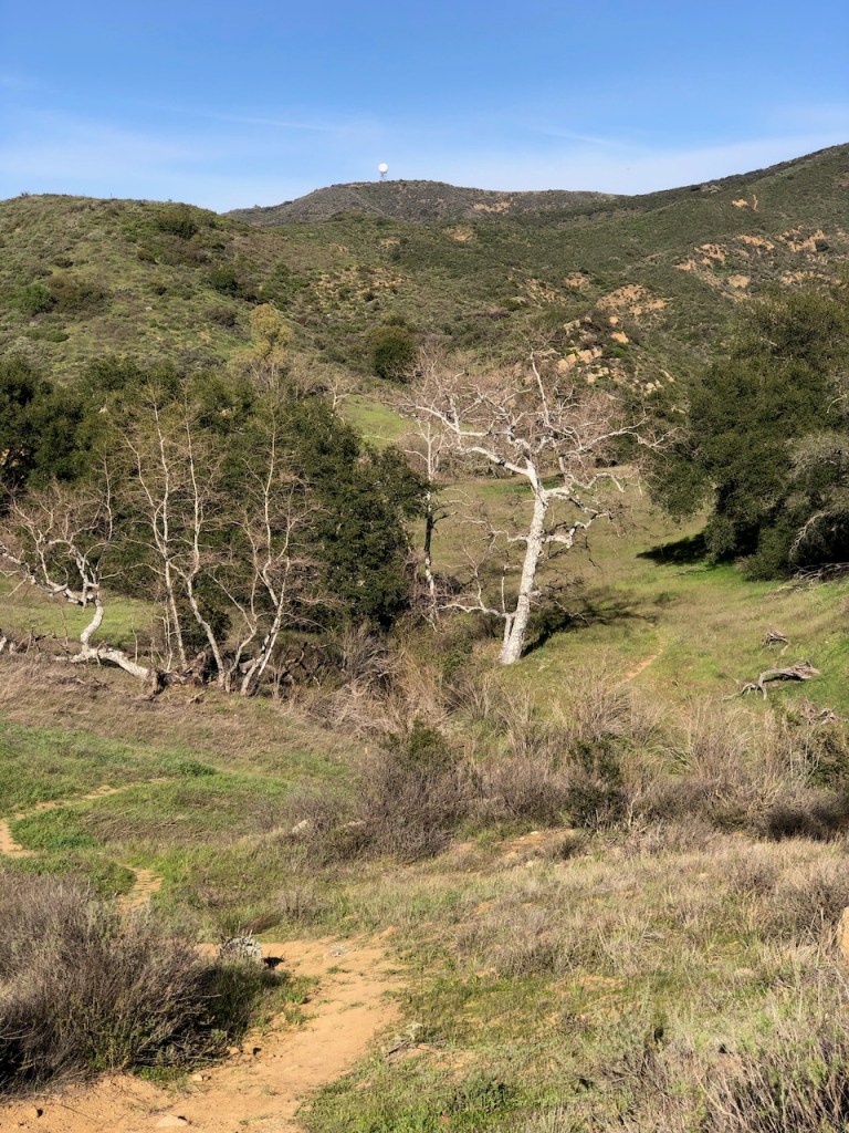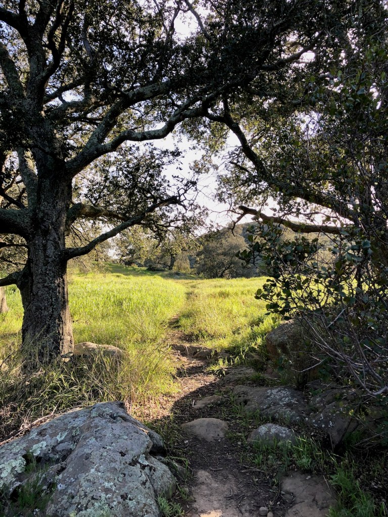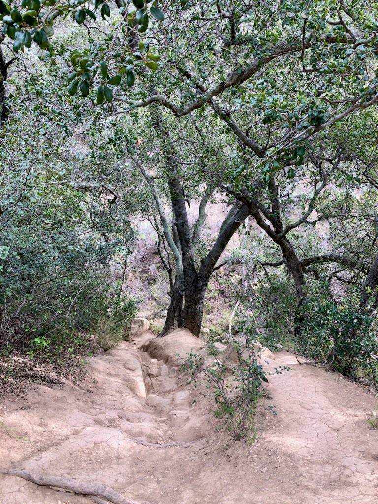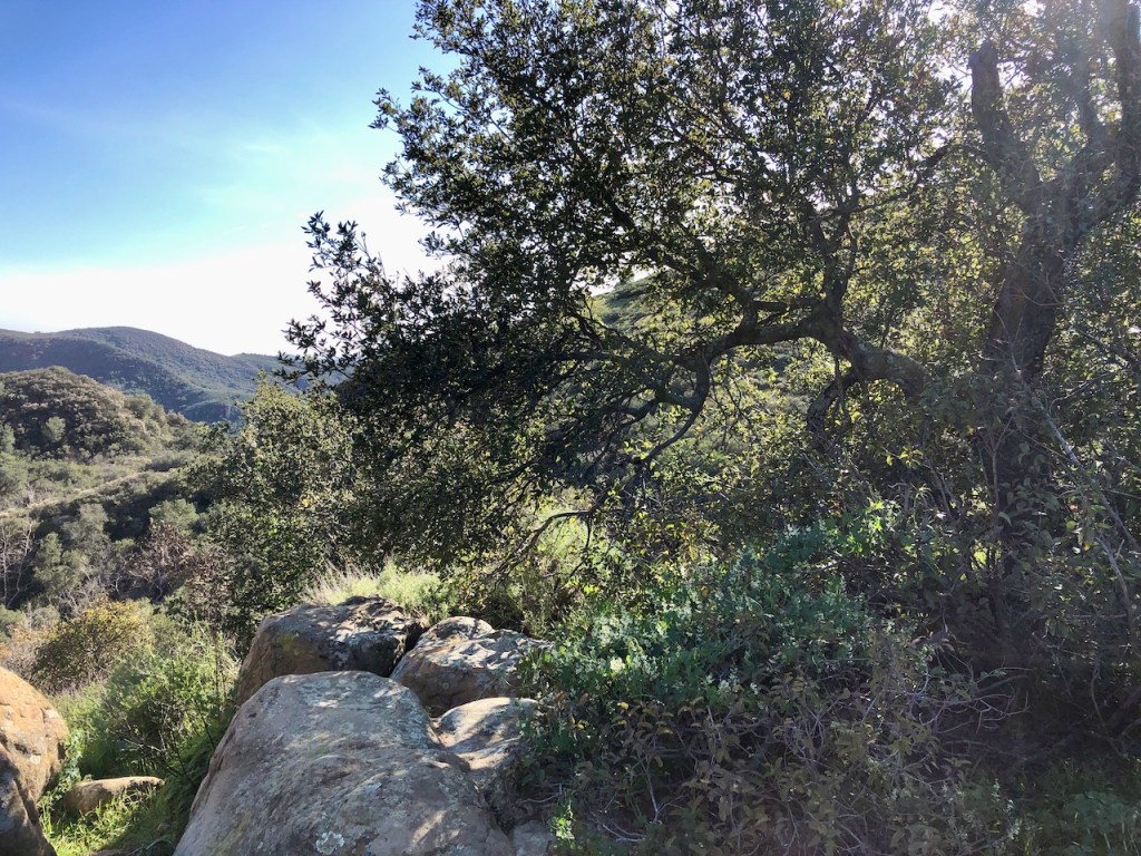 You reach it via a single track trail off to the right, through a grove of Oak trees.