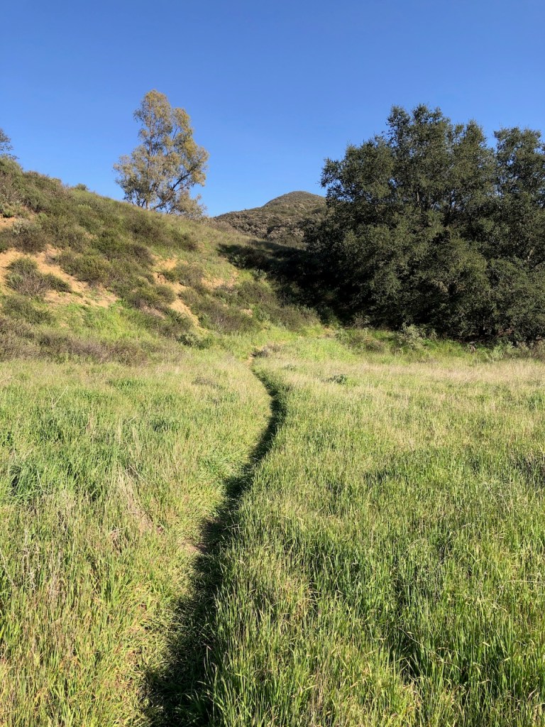 I would continue up the steep fire road, Black Star Canyon Road, to my left.