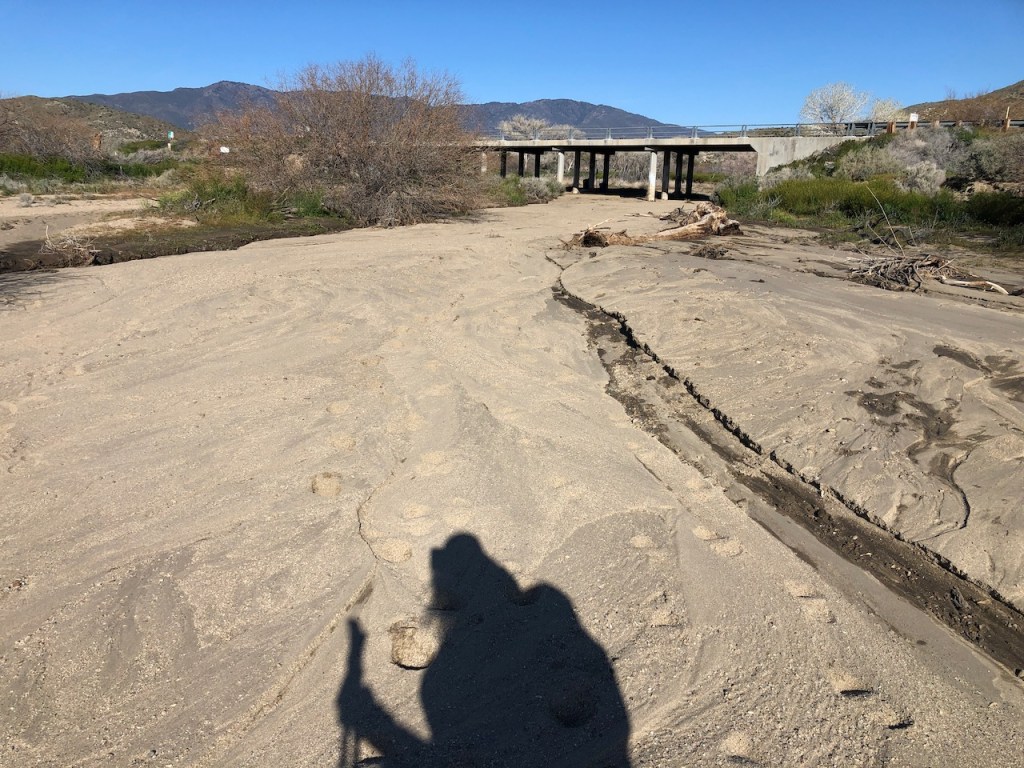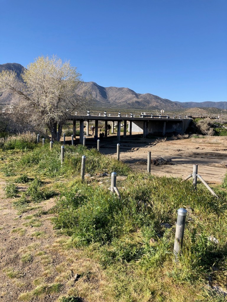 I started off by passing under the bridge at Scissors Crossing, and walking along the wash. There were people under the bridge, with water for filling up, and other supplies for hikers. I guesses these were trail angels, people helping thru hikers out on trail, with no expectations.