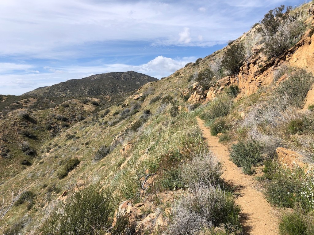 The narrow trail hugs the ridges, and slowly climbs, past Grapevine Mountain on the right.