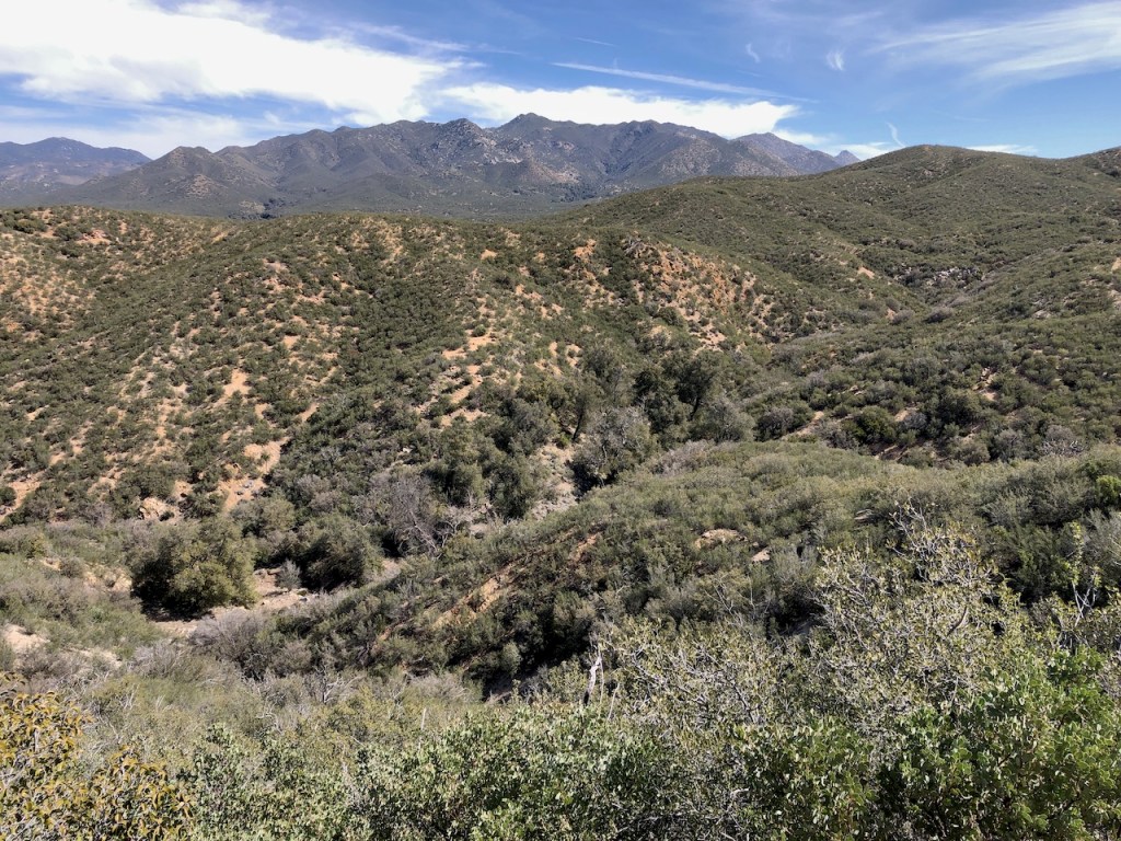 There was a grove of oaks deep in the canyon, where there is more water, and less wind. The ridges are more covered in low growing tree and shrubs.