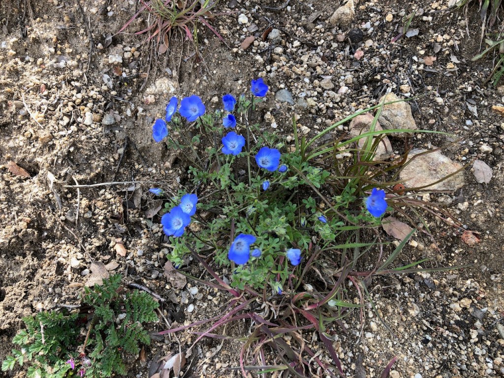 I happened to spot several cluster of bright blue wildflowers, called Baby Blue Eyes.
