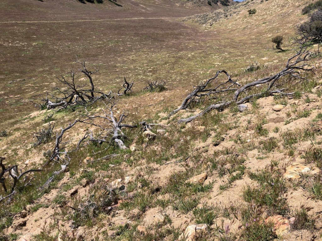 I climbed yet again, over a small hillside, and noticed tons of gnarled looking deadwood everywhere.