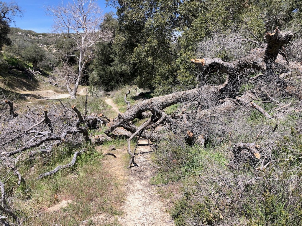There was a downed oak across the trail, and many more deadfall around, that looked like they might fall at any time. Standing dead trees are a real threat to hikers, so I always try to be vigilant, whenever passing by them.