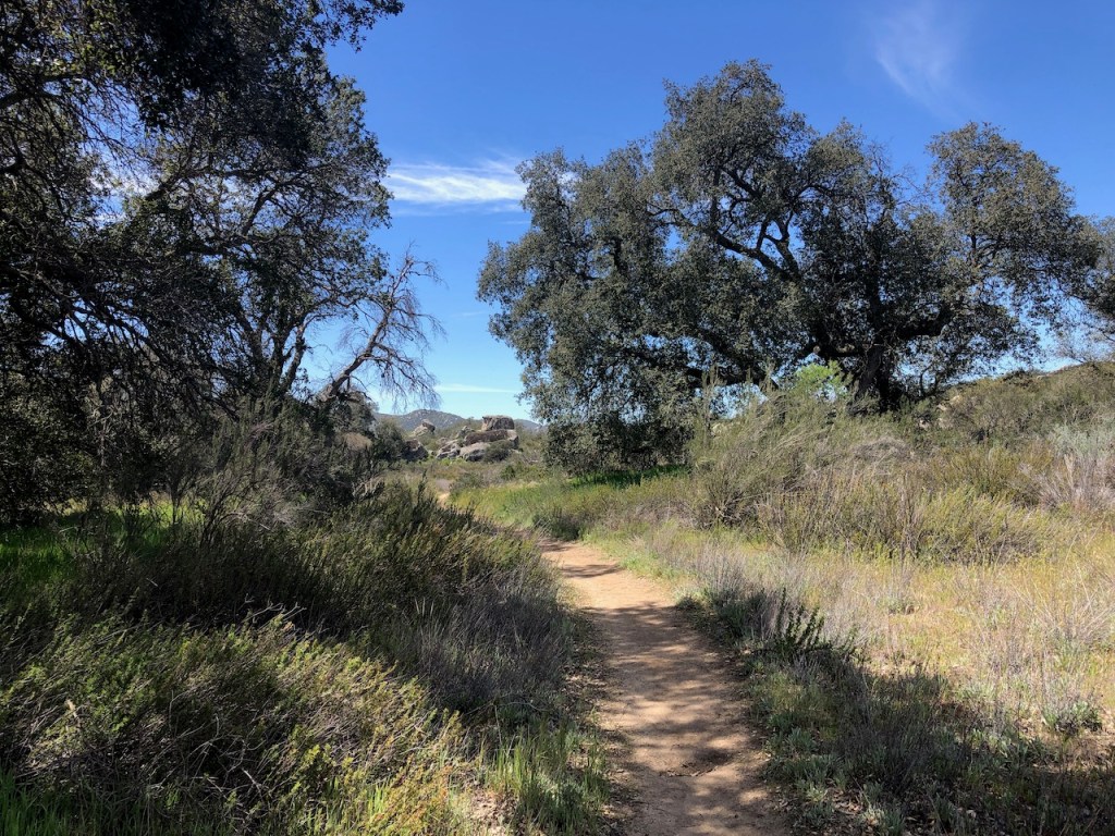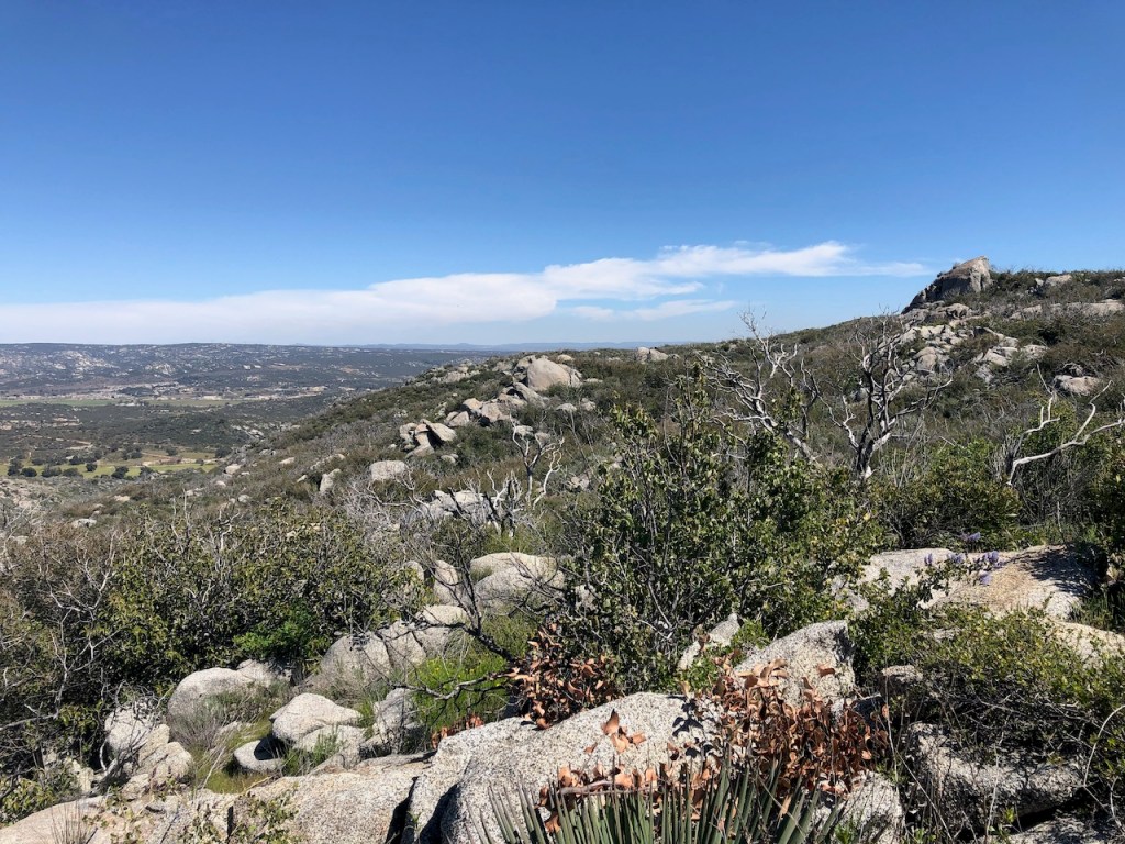 Day 1 of my hike took me further and further away from the border wall, through oaks, and amongst boulders, through the foothills.