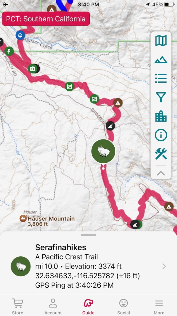 I had heard lots about Hauser Canyon, and the thing that stuck in my mind the most was that you never want to try to hike out of Hauser in the late afternoon. I knew I had no chance with such a late start of making it to Lake Morena at the pace I was going at. I started off at 2.75 miles per hour. I was down to the standard 2 miles per hour. I knew Hauser Canyon was likely my camp spot, if not sooner. I was pretty good on water, since I started with 4 liters that morning, and was feeling confident.