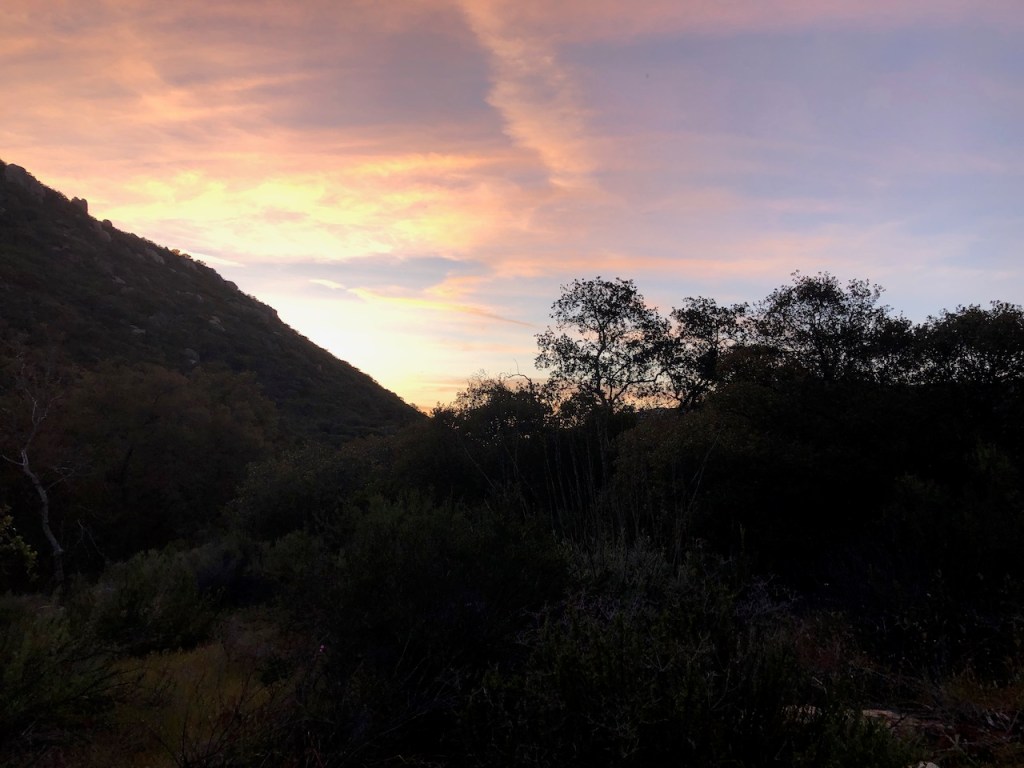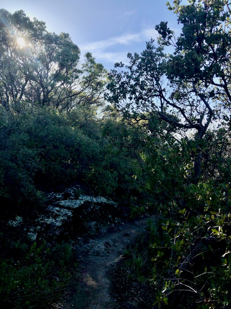 The light was fading as it was around 6:30pm, when I realized I was making it no further than Hauser Canyon today. The trail ventures through an oak forest, as it moves steadily downward.