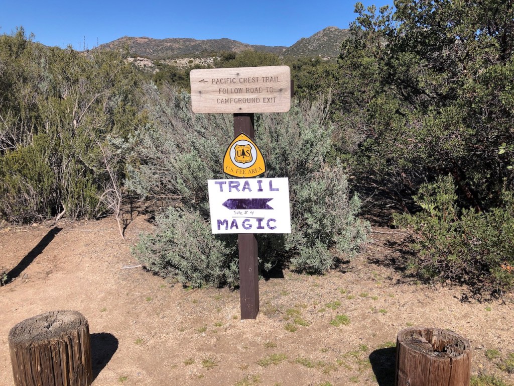 After passing the PCT parking area, a girl in hiker attire approached me as I hobbled over to the spigot. She exclaimed cheerfully, “there is trail magic over there,” and pointed the way.