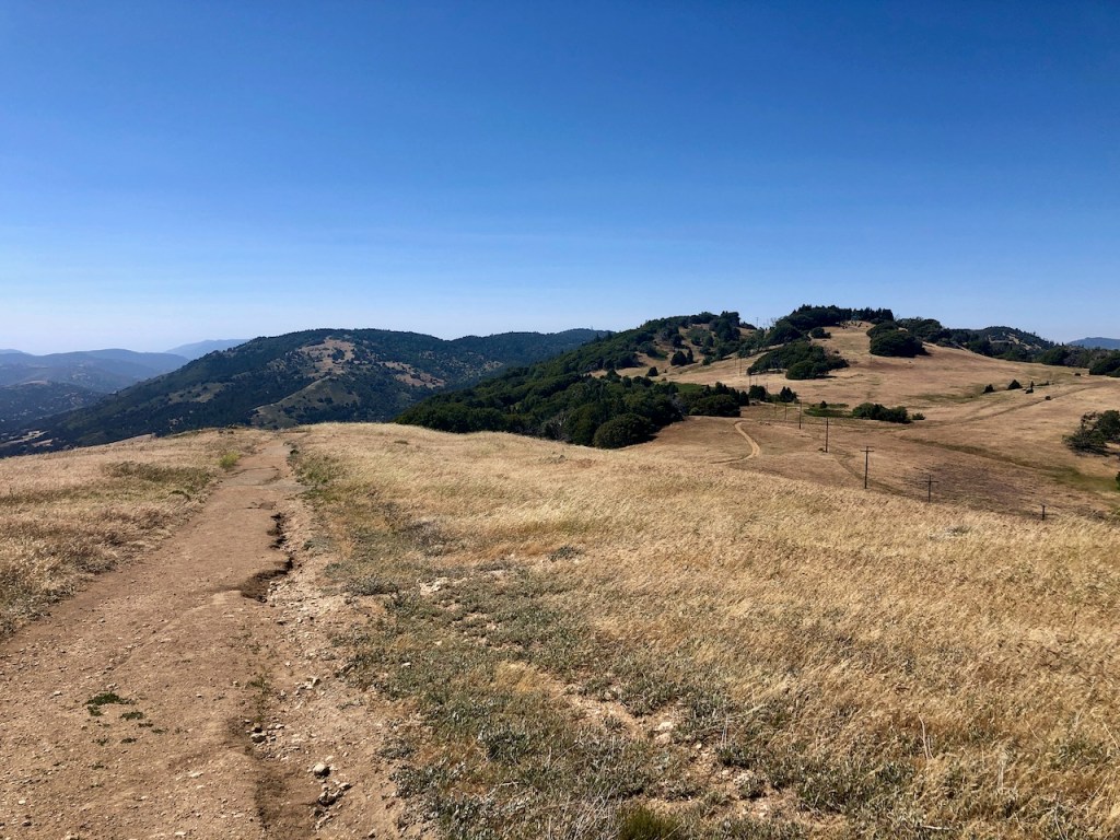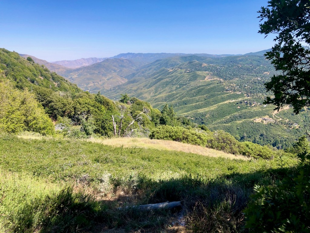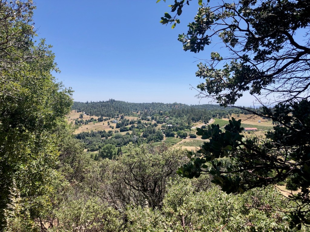 The peak marker itself is shrouded in oaks, and requires a bit of bushwhacking to find. If you are sensitive to plants, you may want to avoid this, and the Five Oaks Trail, or wear protective clothing to shield yourself from plants, such as poison oak.
