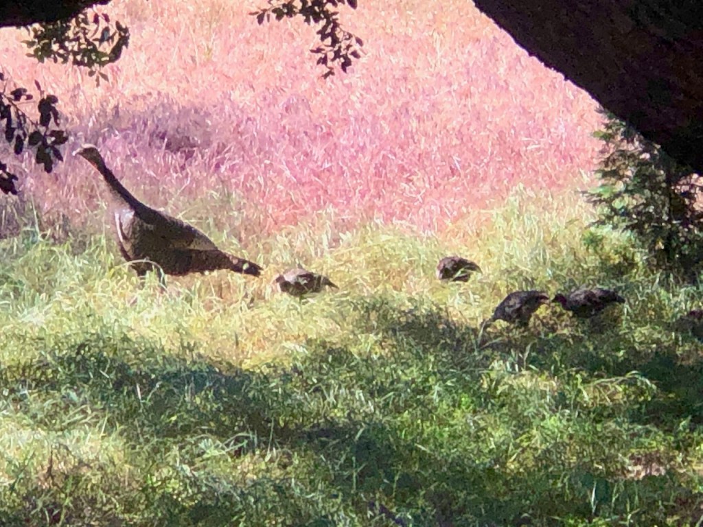 I heard plenty of birds chirping along the way, and saw many butterflies. The Volcan Mountain Wilderness Preserve is home to a variety of wildlife, including deer, coyotes, bobcats, and a wide variety of birds, such as wild turkeys. I happened to spot a family of these large birds, and they were not very quick to react to my presence.