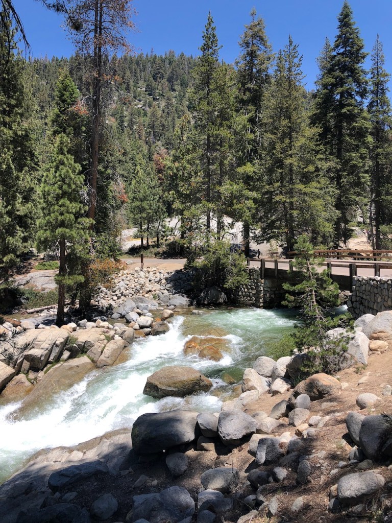 The trailhead to Tokopah Falls begins at Lodgepole Campground in Sequoia National Park, just after crossing over the Kaweah River Bridge towards the rear of the campground. There is ample parking in a large lot for this trail, and you will need to display a parks pass while in the park, which can be purchased at the visitors center. The rangers told me at the kiosk they don’t sell them there, and it is on the honor system to display your pass.