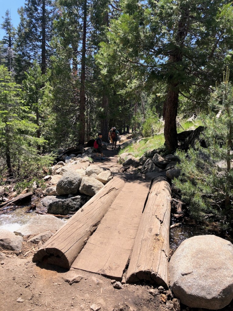 You will need gear you typically take on a day hike. That includes water, snacks, a backpack, sturdy shoes, proper attire, shade, and possibly bug repellant. Trekking poles are recommended for stability on the rocky sections. Also be sure to download a map on alltrails. There was actually some cell service at Lodgepole Campground when I visited which was a big plus. But in the remainder of the park this was not the case.