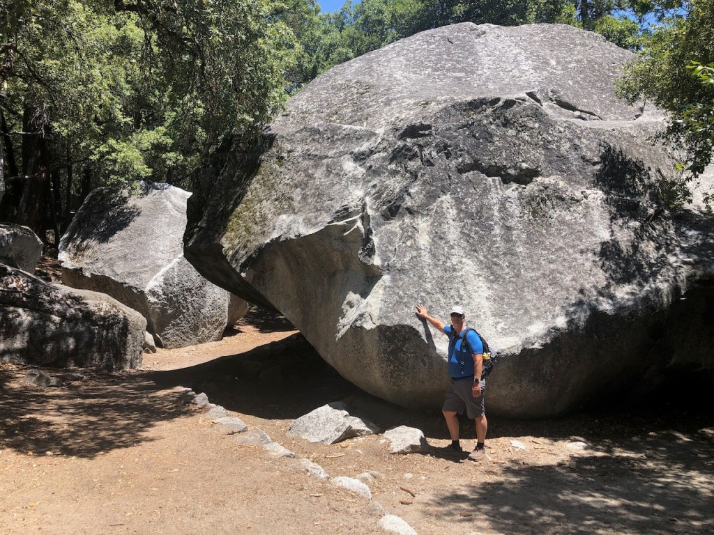 There are a series of named boulders along this trail, one of which is named Wine Boulder, a boulder begging to be climbed (if your experienced of course). Soon winding our way past this boulder maze, found ourselves at the park shuttle stop, luckily boarding a shuttle, headed for Happy Isles, our trailhead for the hike.