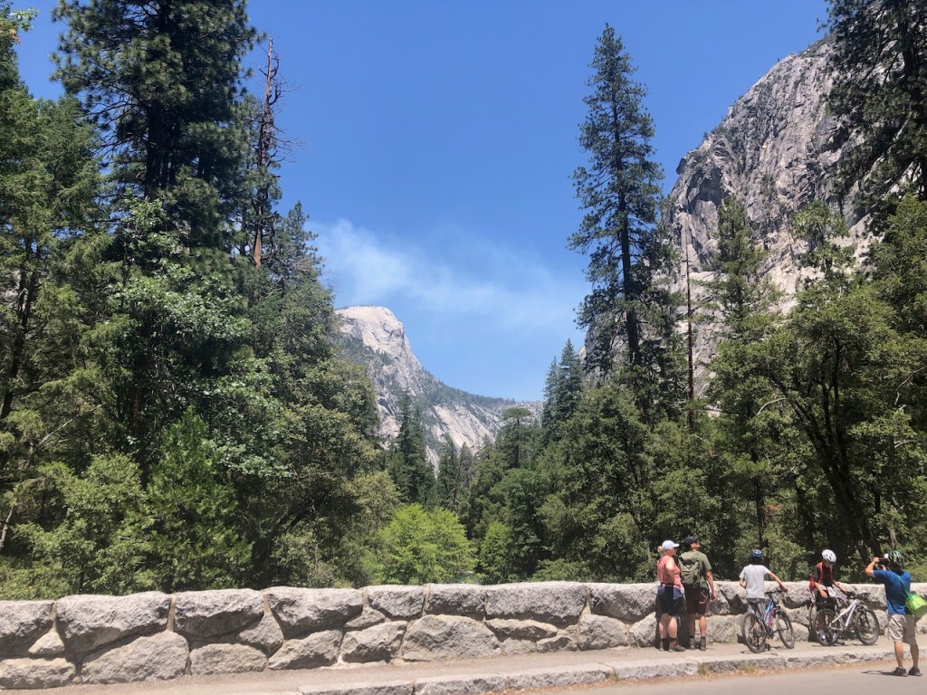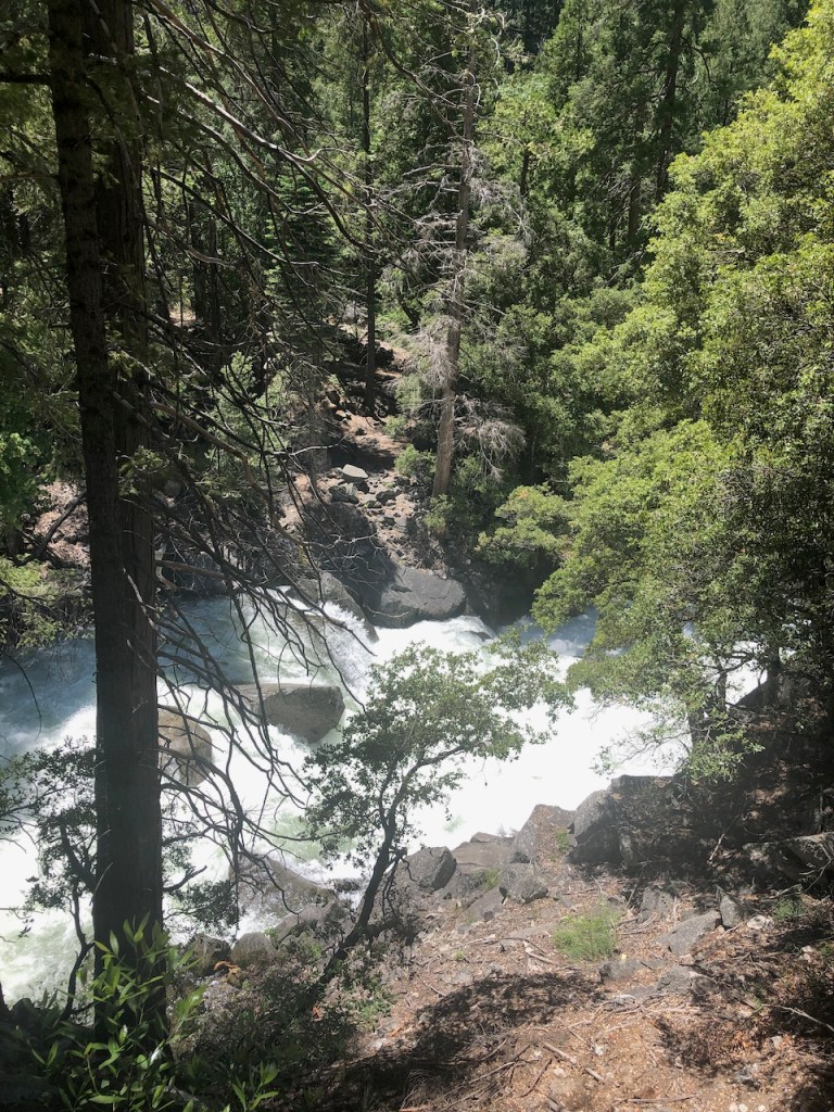 We began by crossing the bridge over the Merced. The water was flowing at full capacity, meaning falling in could be deadly, since it was a raging rapid.