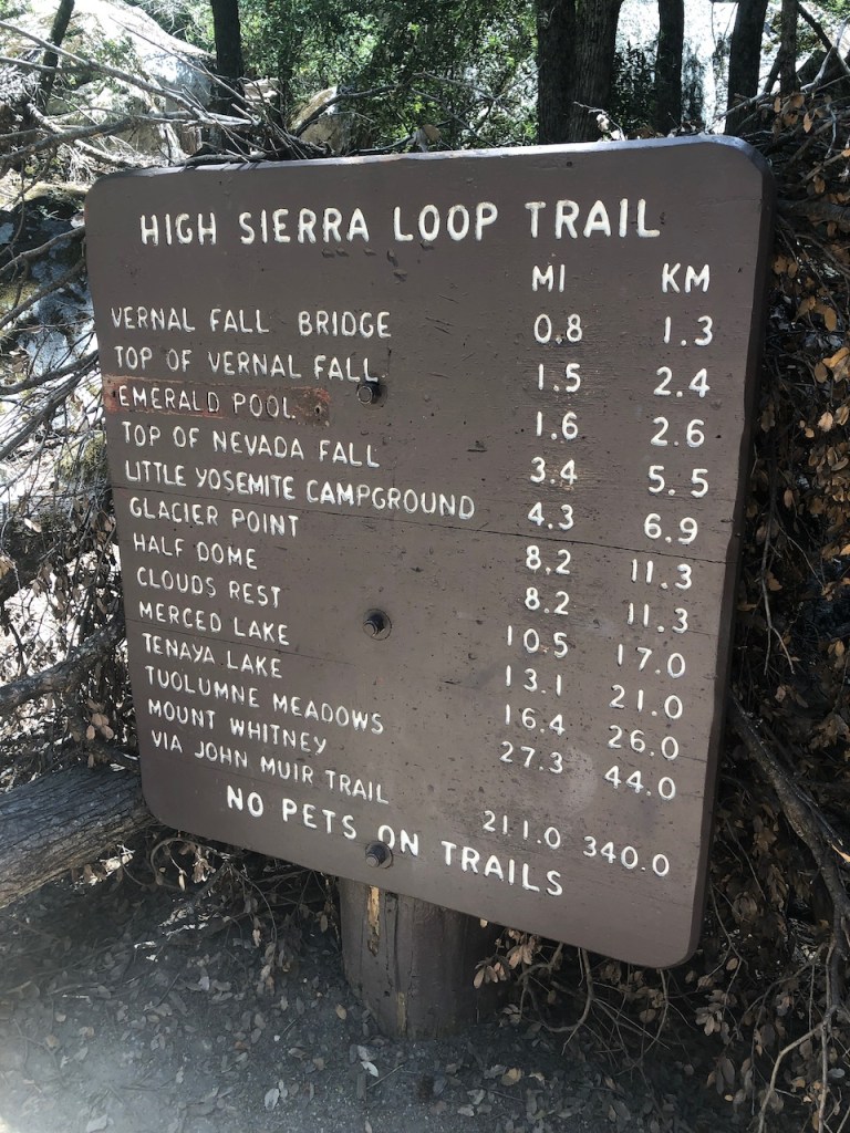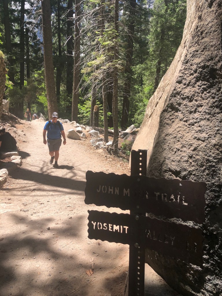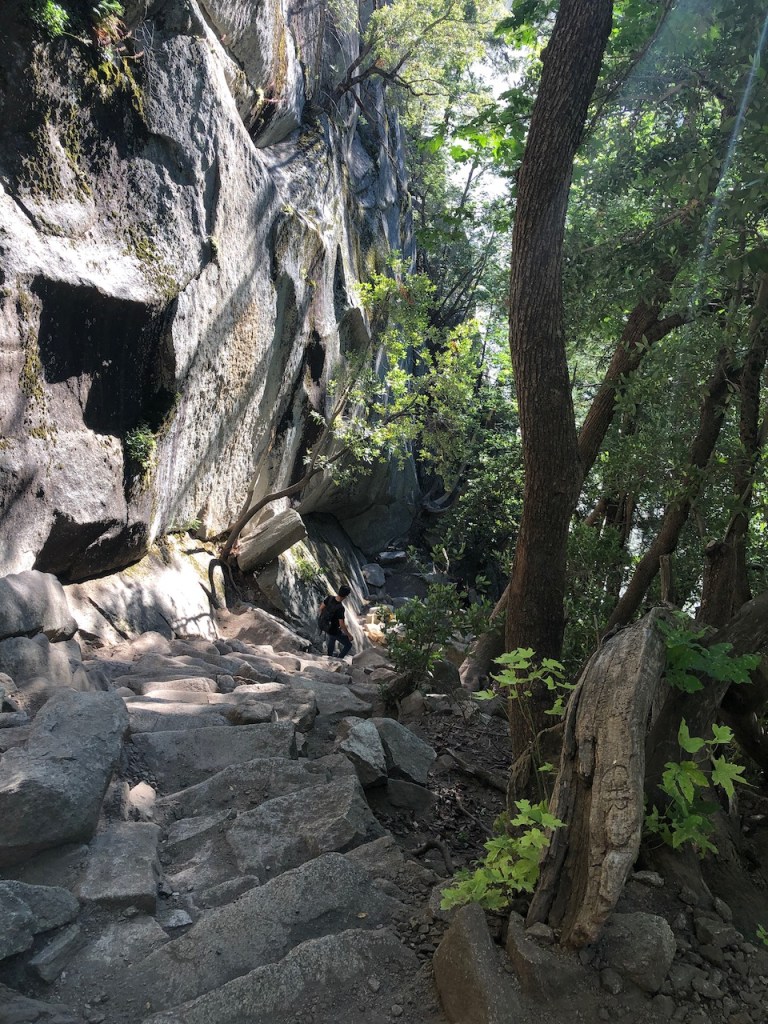 This wall honestly felt like an oven. That was the worst of it, as far as this trail goes. It was easy to follow, and before we knew it, we were at the turn off for Vernal Falls.