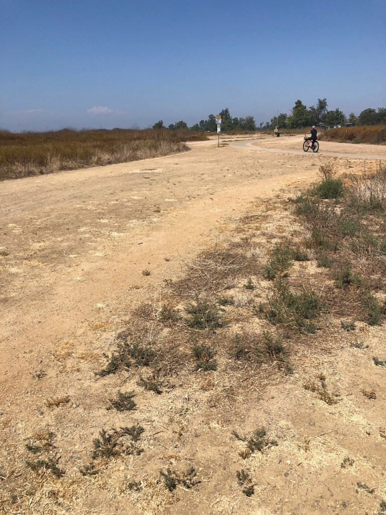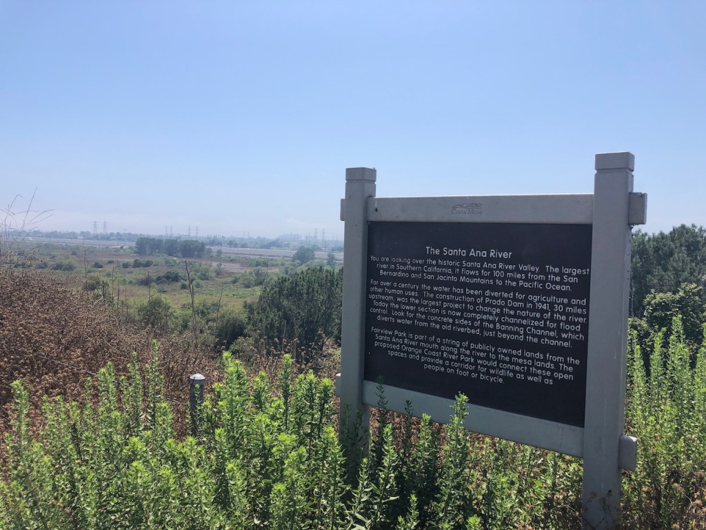 There are view’s of the surrounding nature preserve, the Santa Ana River, Huntington Beach, and on a clear day, you can perhaps see the Pacific Ocean in the distance. The park is composed of native coastal low growing shrubs. It is green in springtime, and filled with wildflowers. The greenery and color fades as summer arrives, where there will just be a few wildflowers growing. I observed some wild non-native, fennel, with its golden yellow flowers, that remained in bloom into August.