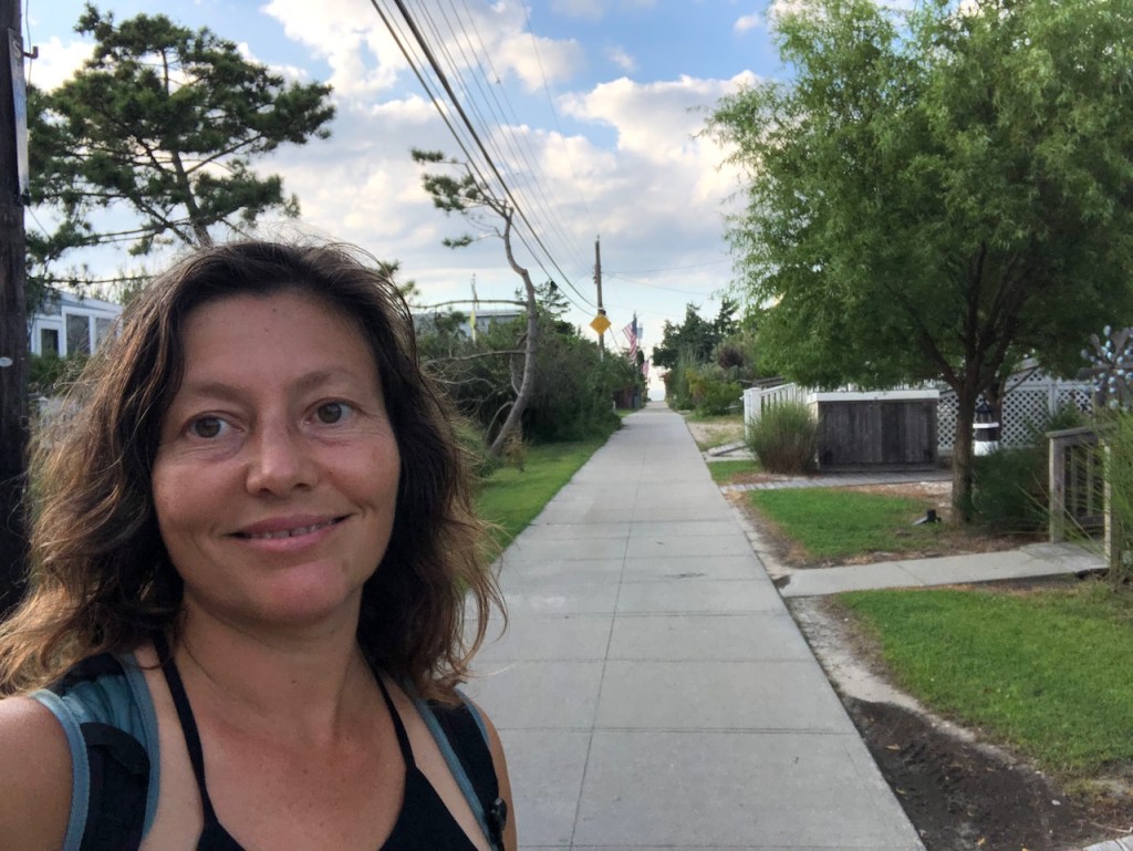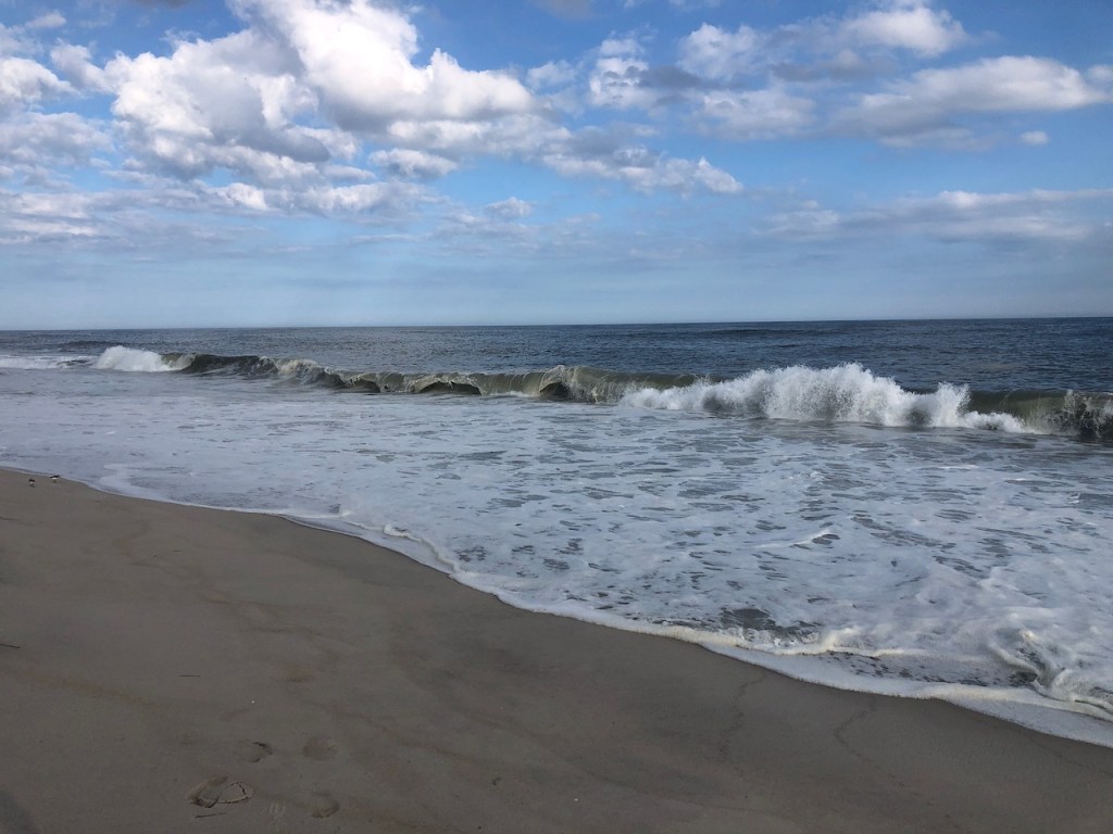 I stopped to take a dip in the ocean a few times, but I did not go far out. The slope of the beach here, and the rip currents, could easily suck you out. Even though I swim and surf, I decided to just go up to my waist for today. I was, after all, leaving the next day, so I had to swim in the same ocean I grew up with, immersing myself in it one more time. Who knows when I would visit these barrier islands again.