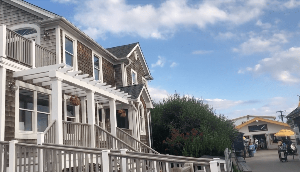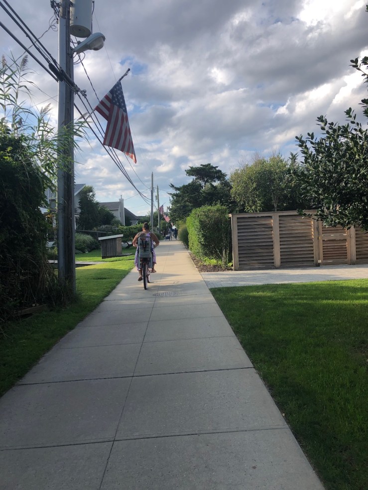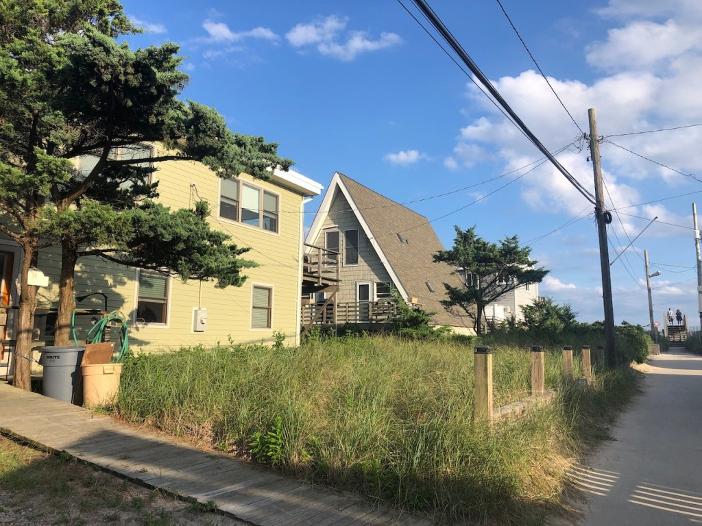 The town begins on the bay side, stretching about halfway across the island to the ocean. A generous swath of sandy beach, and a dune, not more than a few feet high, protects the town from the forces of the Atlantic.