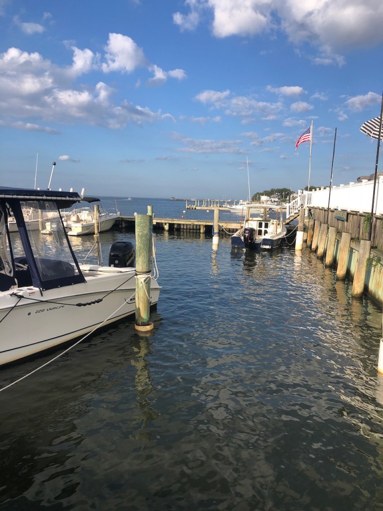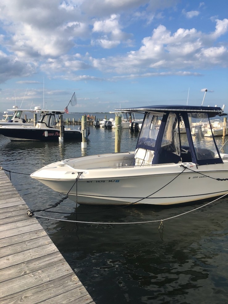 Looking out across the Great South Bay I could spot motorized watercraft darting back and forth across the bay, creating small wakes, which would proceed to slosh against the boat dock.