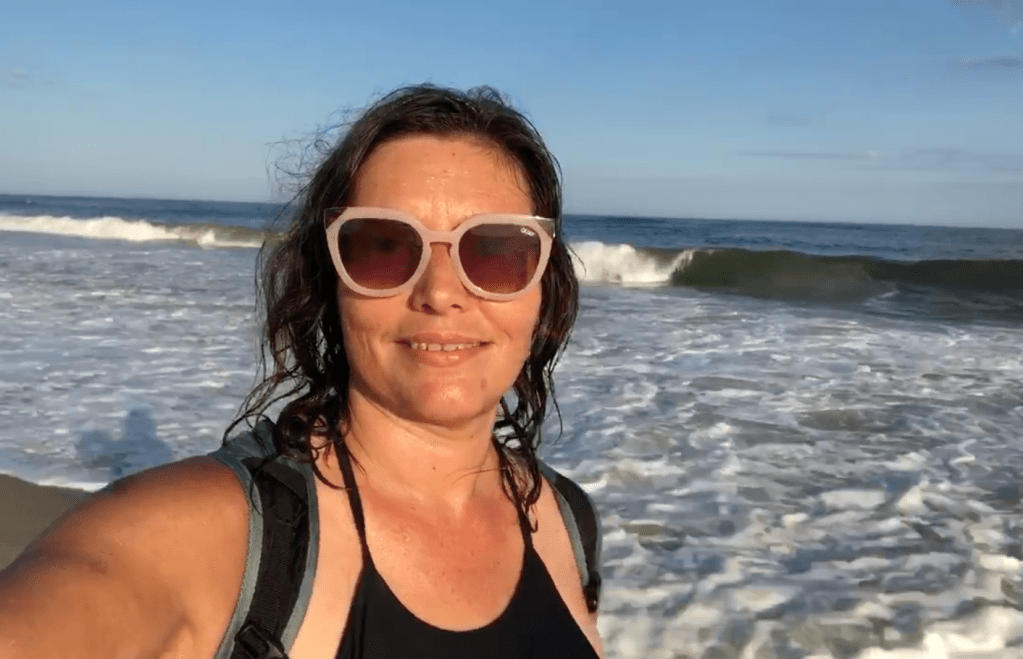 As I walked along, the foamy ocean tide washed over my feet. It was just the right temperature, and in the 70’s, so I knew I had to go for a swim.
