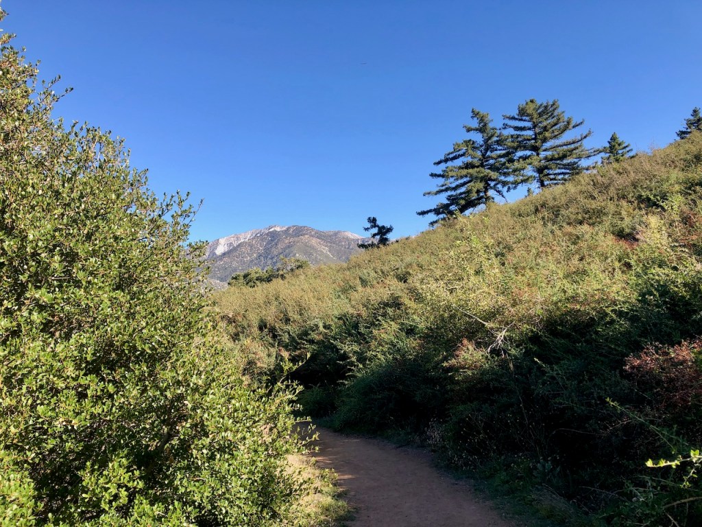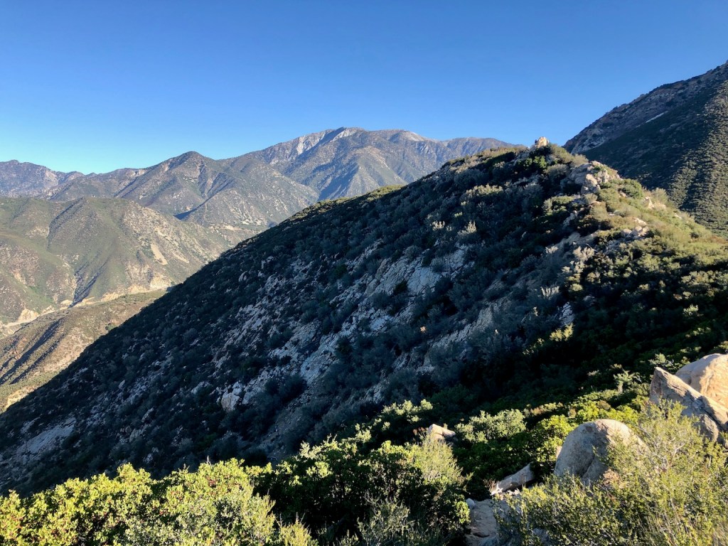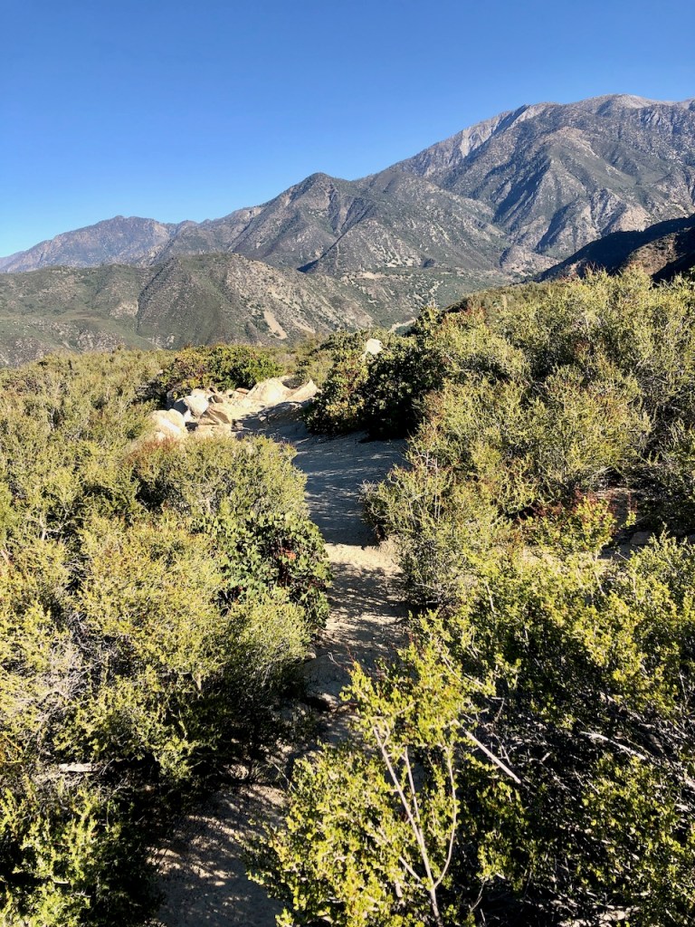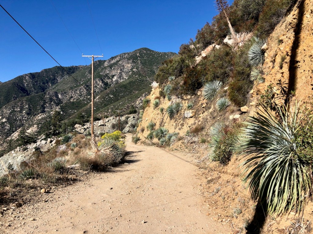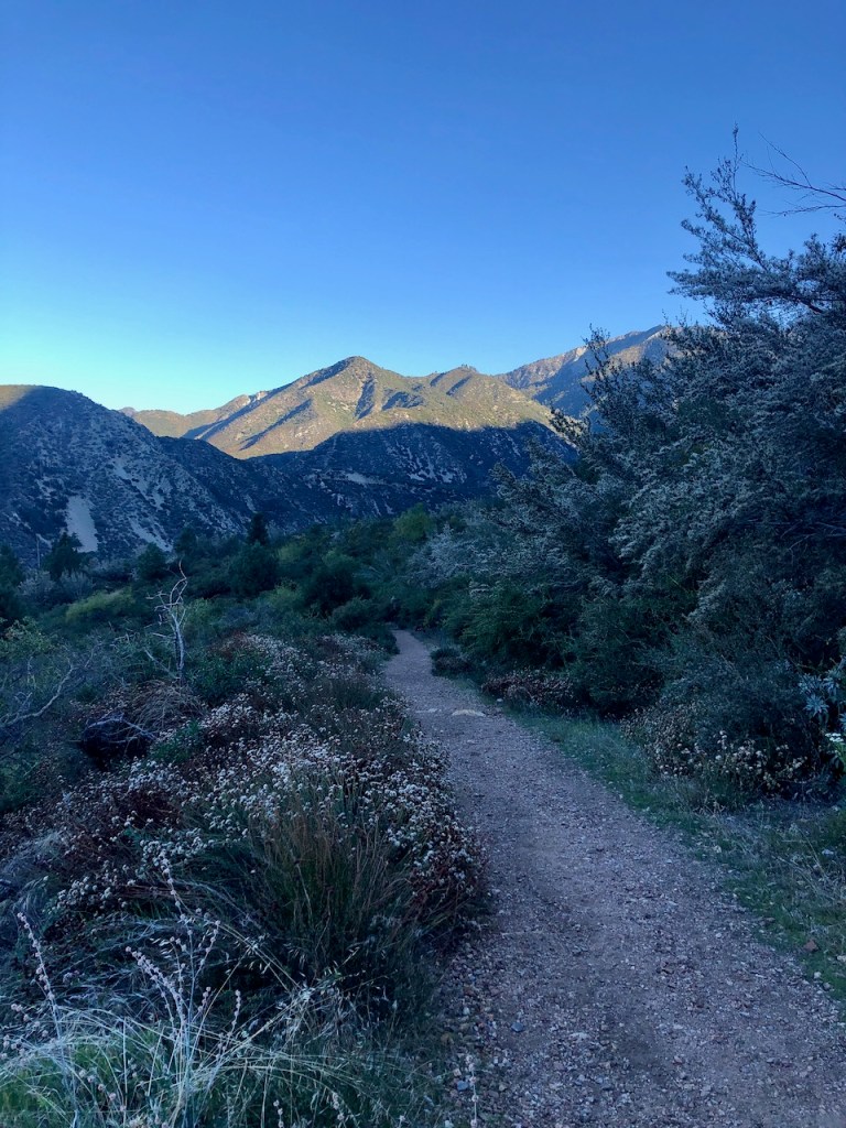 As I climbed higher, the hike became more exposed, but in the morning, the trail was still very much in the shadow of Ontario Peak, up above.