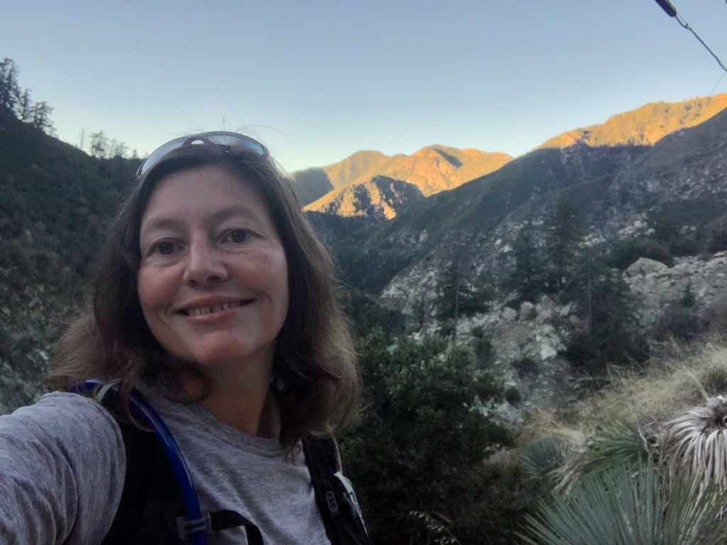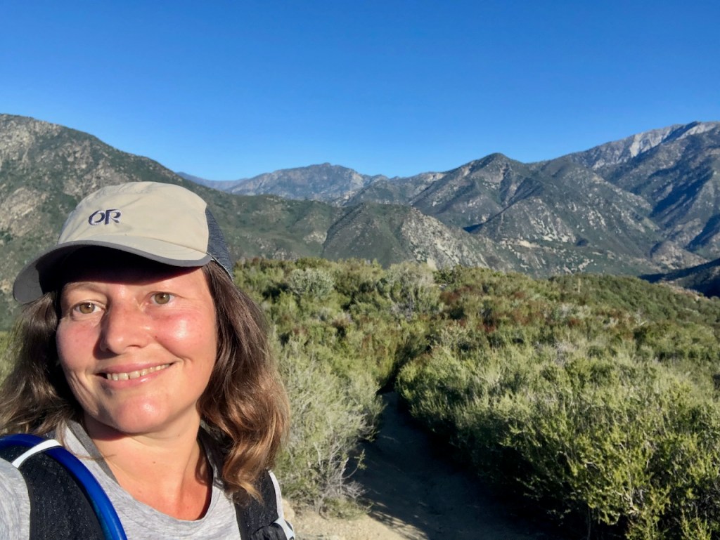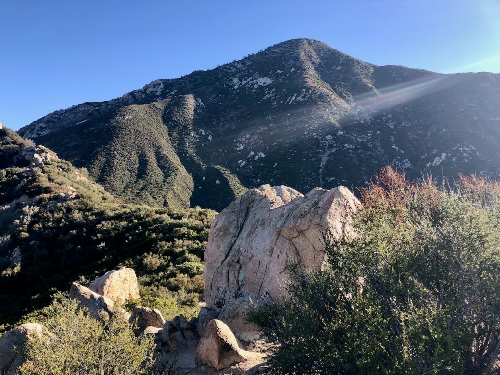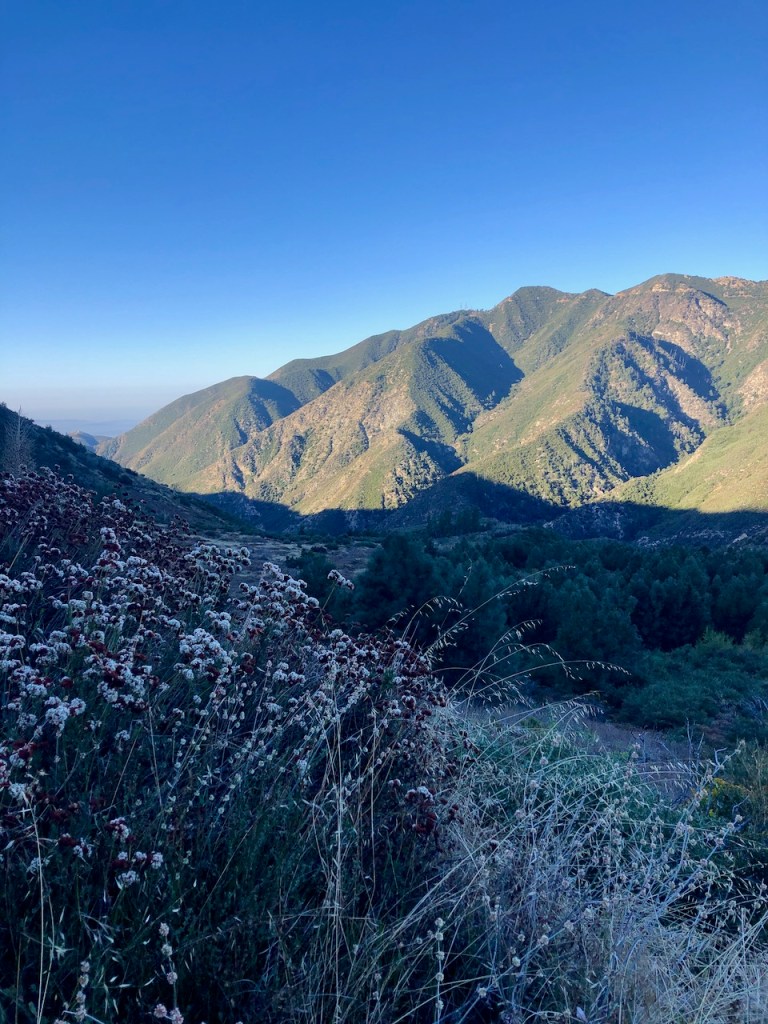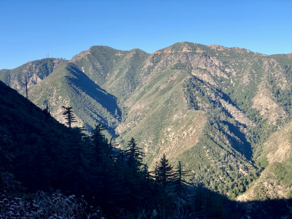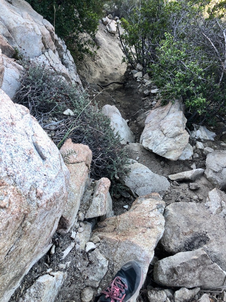 As I climbed higher, the hike became more exposed, but in the morning, the trail was still very much in the shadow of Ontario Peak, up above.