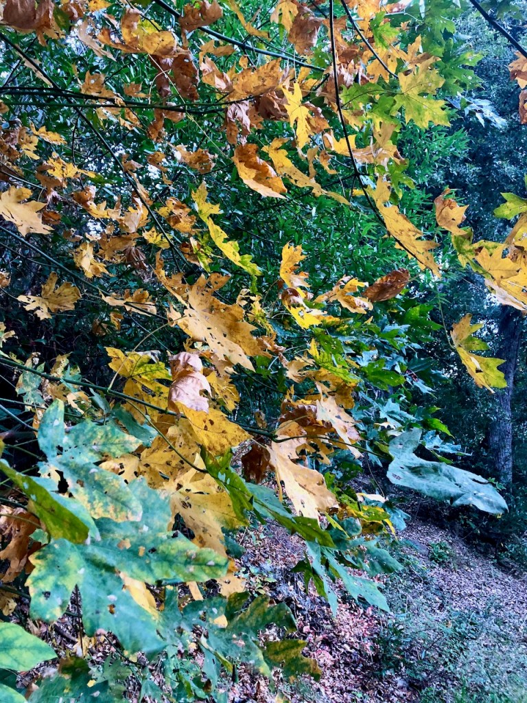 The trail was strewn with fall leaves and lots of acorns.