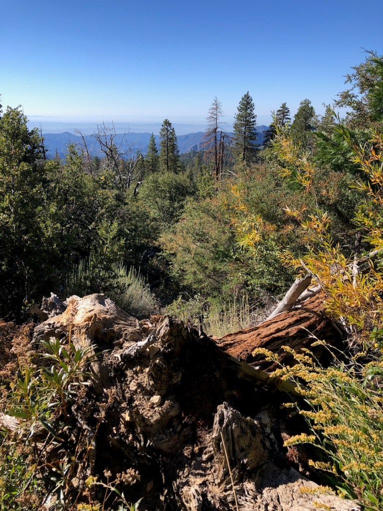 This ridge looked like pure tinder, and I tried not to think about it too much. Since September to October is fire season here, I was not here at a great time of year but during the driest season. But since this year was a bit wetter and cooler than usual, it was not as tinder dry as it could be. Also, there were no Santa Ana winds blowing. Whew…