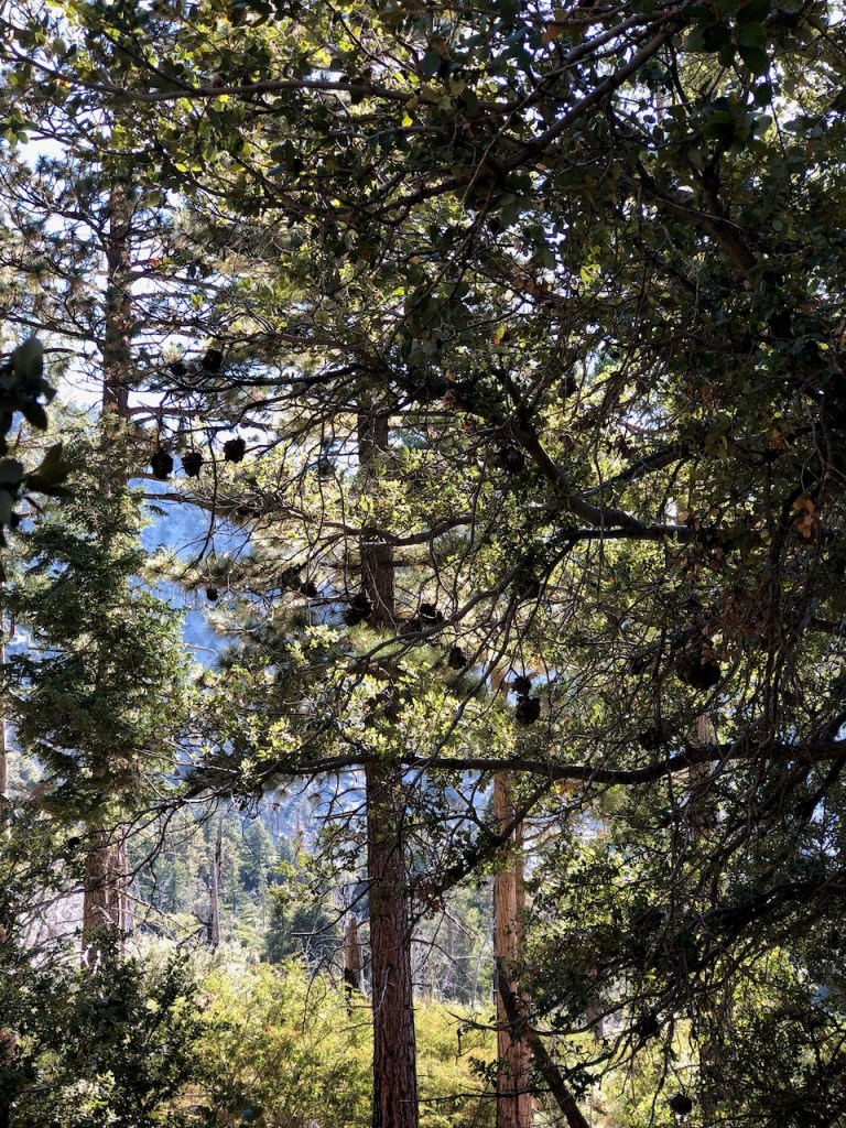 I walked through the beautiful alpine forest of pines, and cedars, noticing the large pine cones of the Ponderosa Pine.