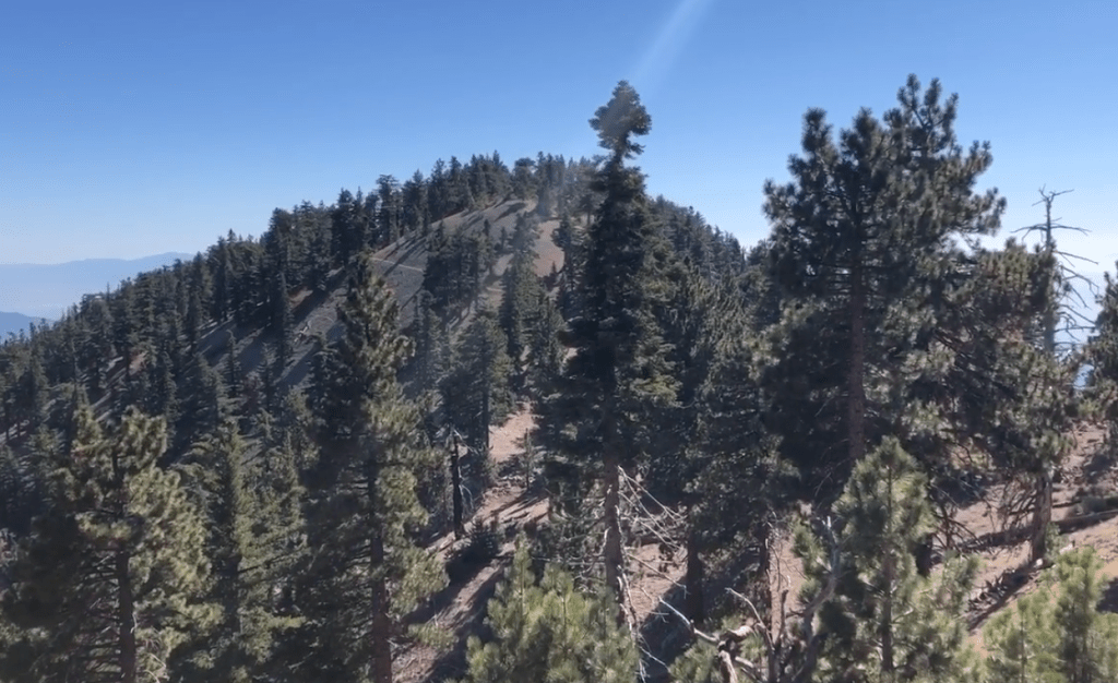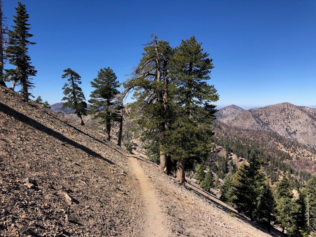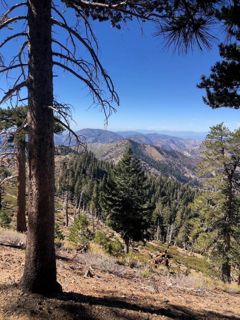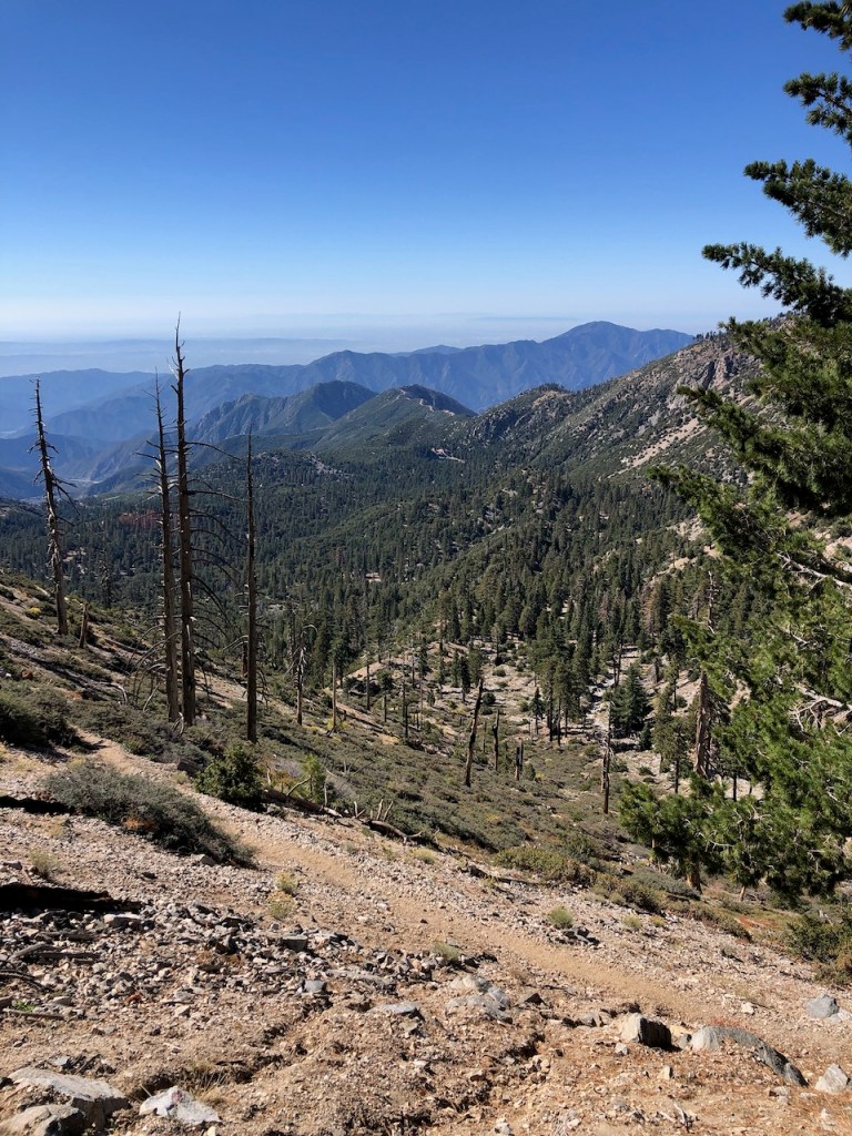 vIt was dusty, rocky, and narrow on the singletrack leading to Mount Hawkins, but the views down into the valley were spectacular.