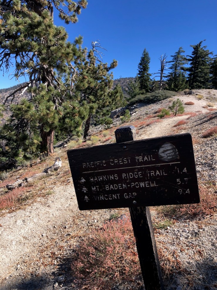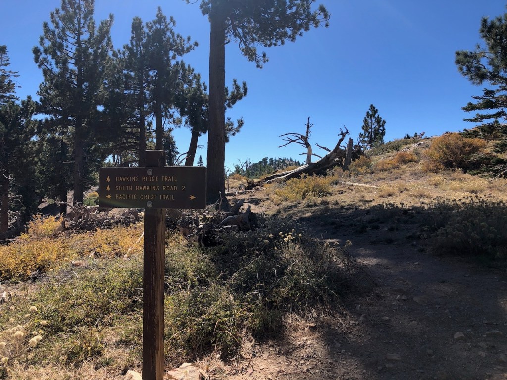 Eventually I met the turnoff for South Mount Hawkins, just after two older ladies hiked on past me, and not long after that, a lanky long haired guy, wearing a pair of pink yoga pants passed by. They say hike your own hike. All were hiking in the opposite direction on the PCT towards Windy Gap in the opposite direction. These three would be the last hikers I would see all day, and I would be all alone out there the next few hours.