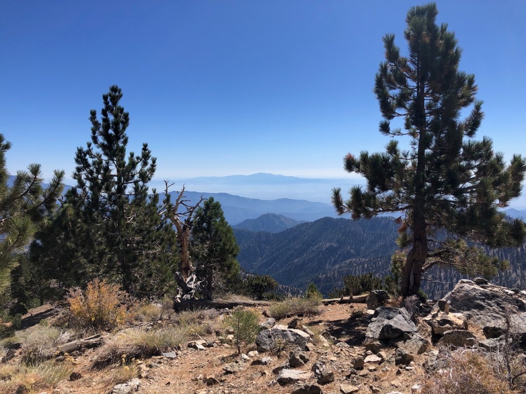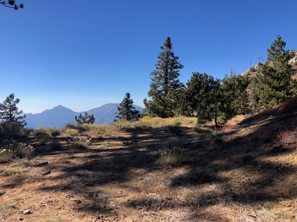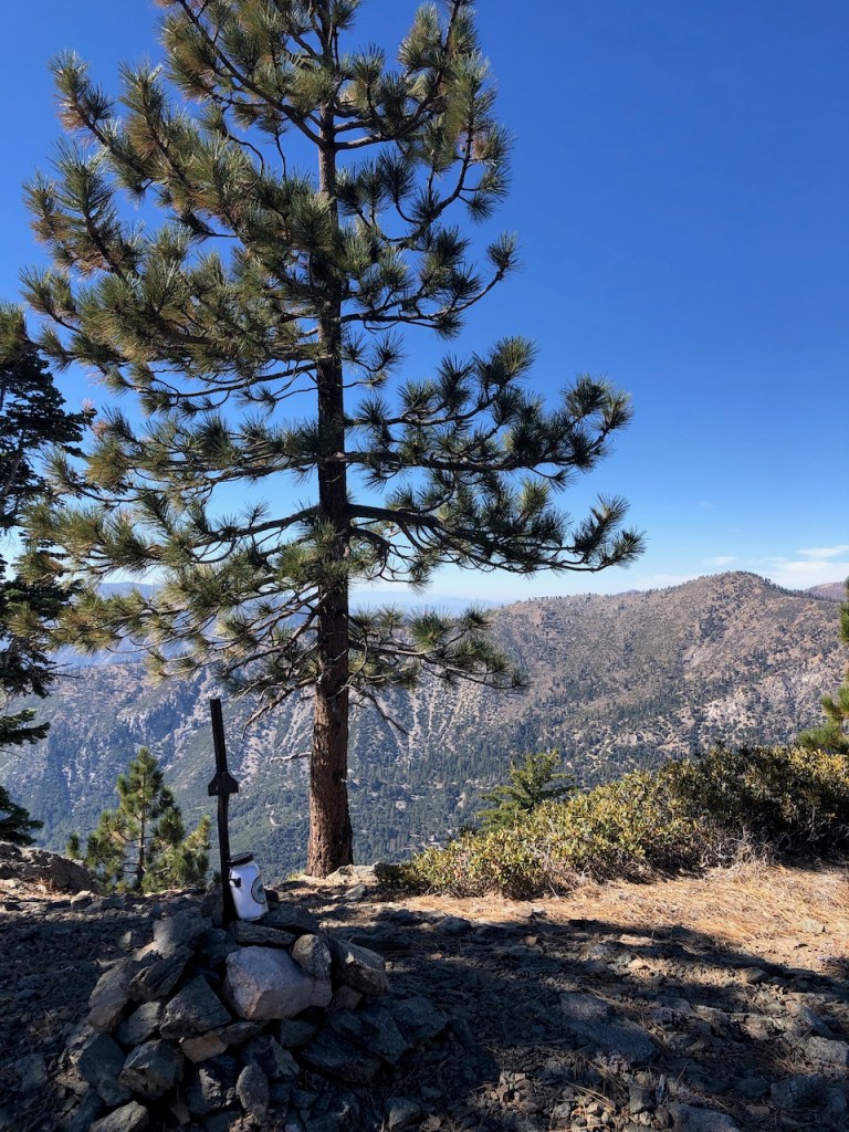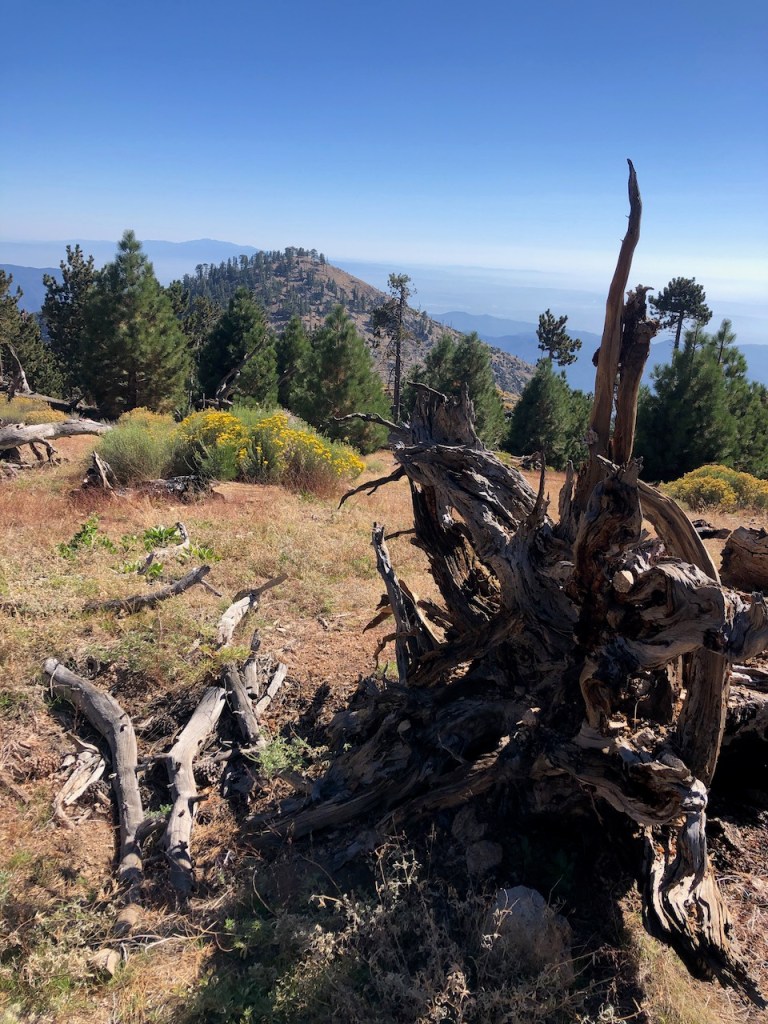 I finally made it to my last peak of the day, South Mount Hawkins (Elevation 7773 ft). This was my second time hiking to four peaks in a day. The ridgetop here was barren, with just a concrete slab, and the remnants of what once stood here, an old fire lookout tower. Again, there was no peak marker or sign atop South Mount Hawkins. I had officially checked off another peak from the Sierra Club’s Hundred Peaks List. After a brief rest, I headed on back only to realize I left my hat, 5 minutes later. I ran back up to snatch it, before heading back down the same narrow trail I came up on, to connect with the much wider South Mount Hawkins Road which I would hike back to Crystal Lake Campground.