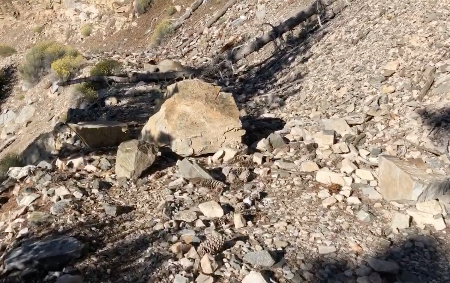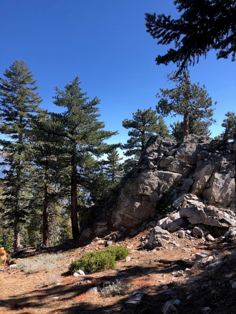 Alltrails kept glitching in this area a lot. It kept needing to be closed, and re-loaded for some reason. There was no trail continuing on from Middle Hawkins, without backtracking, so I made my own. I passed a beautiful rock formation, as I descended Middle Hawkins, off to my right. It was comparable to Castle Rock in Big Bear.