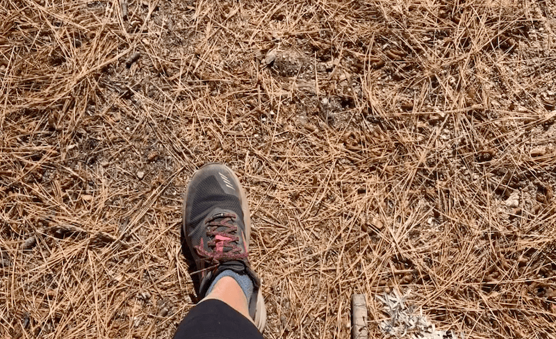 I chose the best path possible down Sadie Hawkins, in search of the trail. Alltrails was insanely helpful during all this, when it was not glitching every 5 minutes, and needing to be re-loaded. I had to shut down the app, and find the map again in my saved maps each time. It was such a pain. But somehow I kept getting it to work again. I crossed through many more heaps of pine needles, navigating between fallen trees, large burls, and clusters of big shrubs.