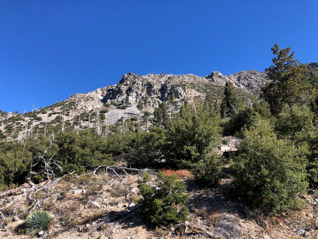There was a very slight trail, leading to the summit of Mount Hawkins. I only had a bit less than a hundred feet of climbing to go. Mount Hawkins was in my sights.