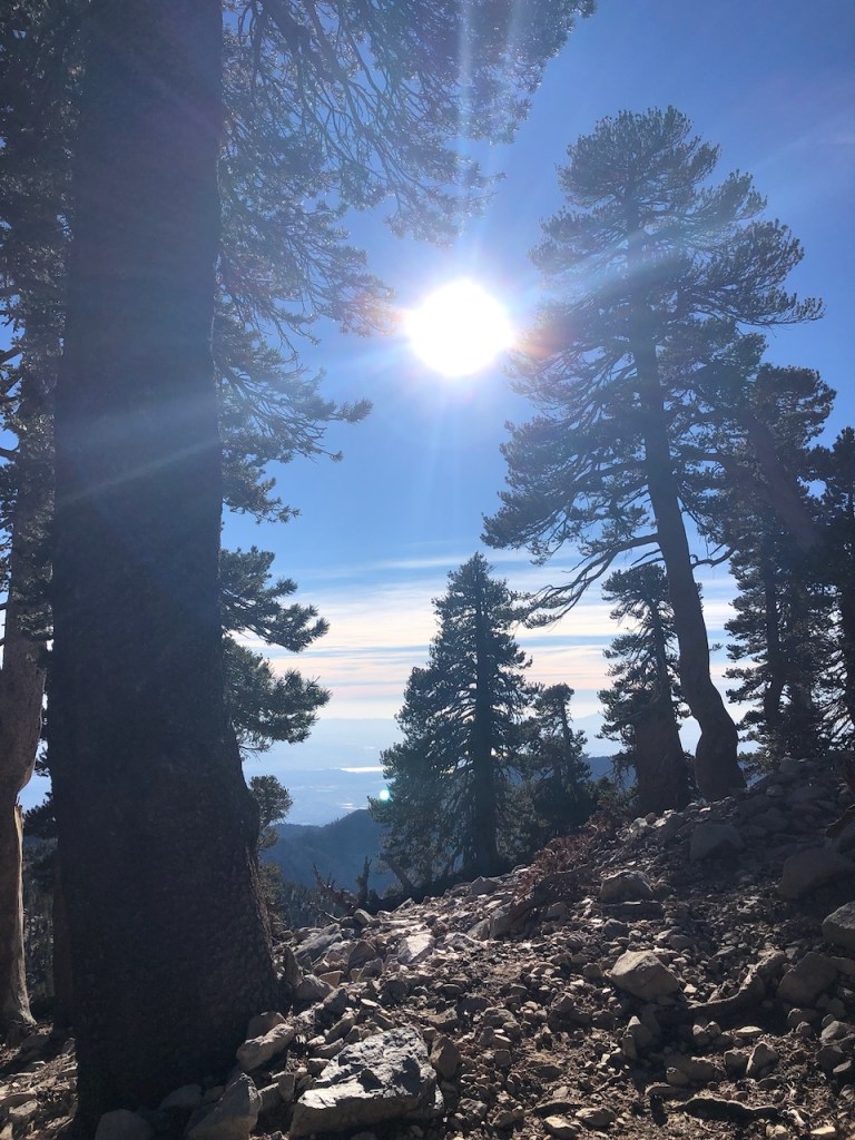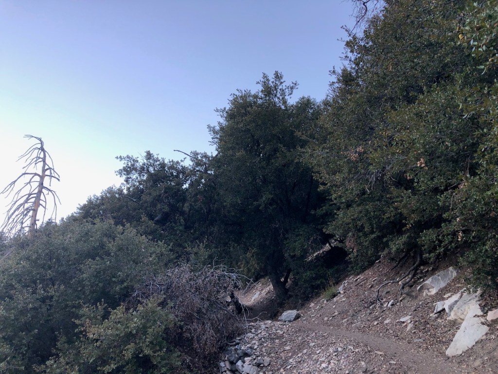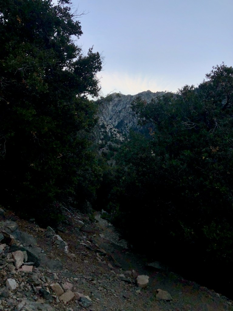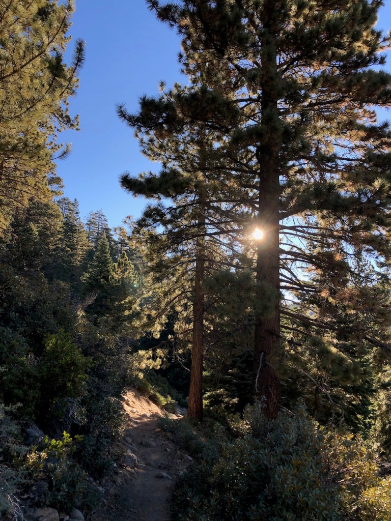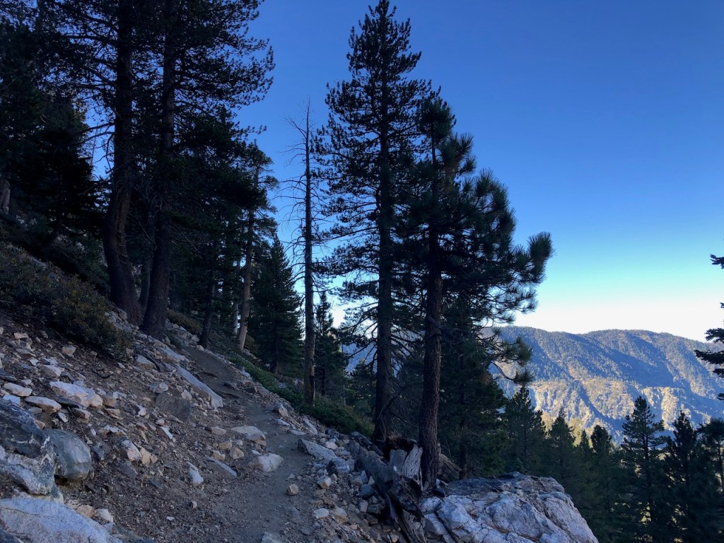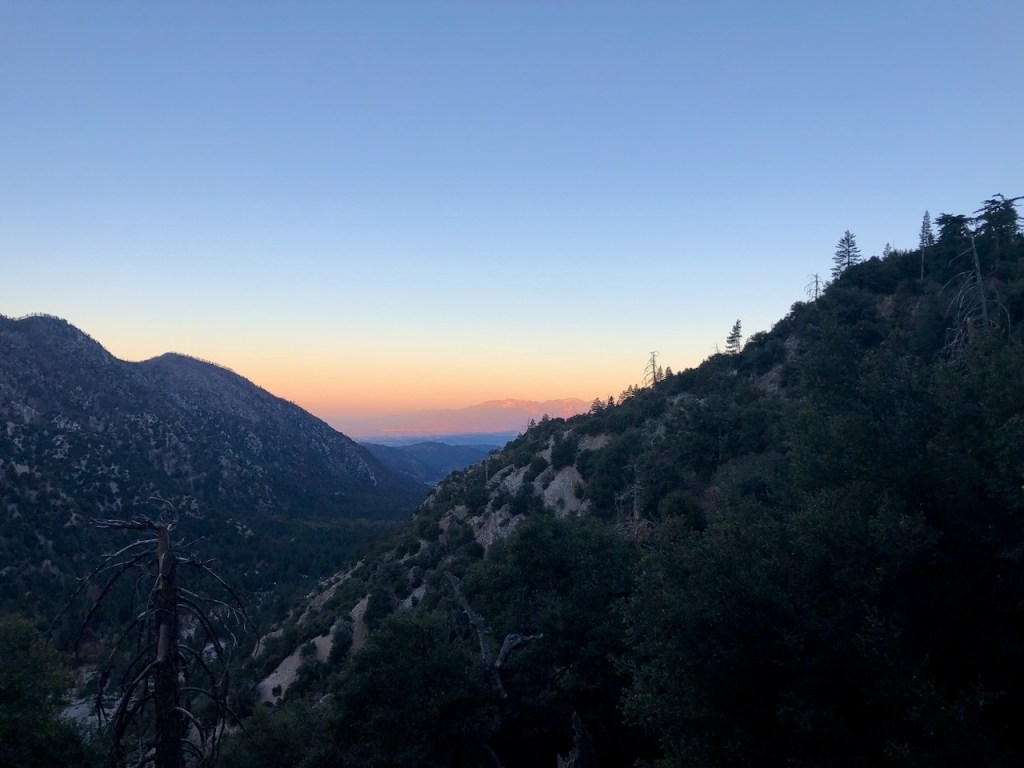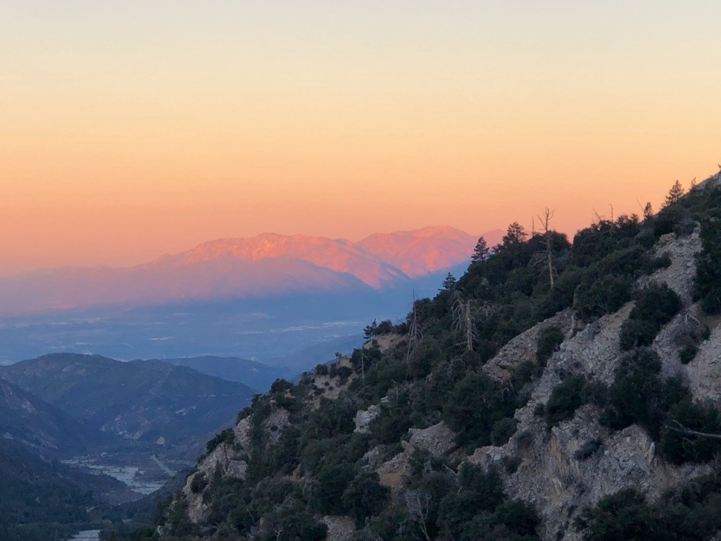 As I came to the end of one long switchback, I was greeted with Mount Baldy, aglow in the distance, in shades of pink and orange.