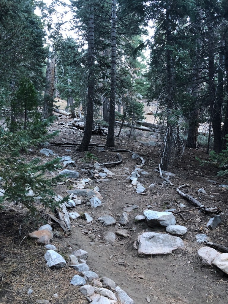 I crossed the creek once again, and was greeted with even more switchbacks. It never got any easier, as I climbed higher on a loose granite encrusted trail. I had to take care with my footing, so I did not roll an ankle on the many loose stones. Again, slow and steady wins the race was my mantra.
