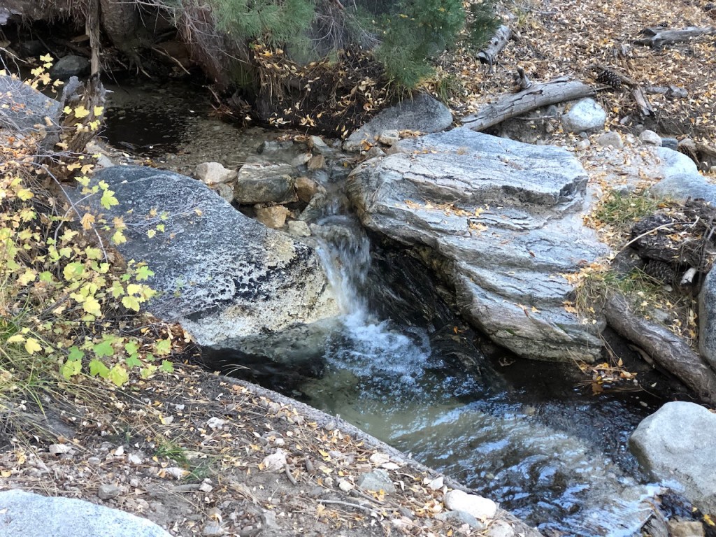 Streams were flowing, and there were fall colors everywhere, as I passed the campground. I crossed the creek easily on a large log. There were countless small waterfalls cascading down the mountainside alongside the trail. Streams continued to criss-cross the trail for the next mile or so, and water was plentiful. It was so tranquil, and peaceful here in the forest.