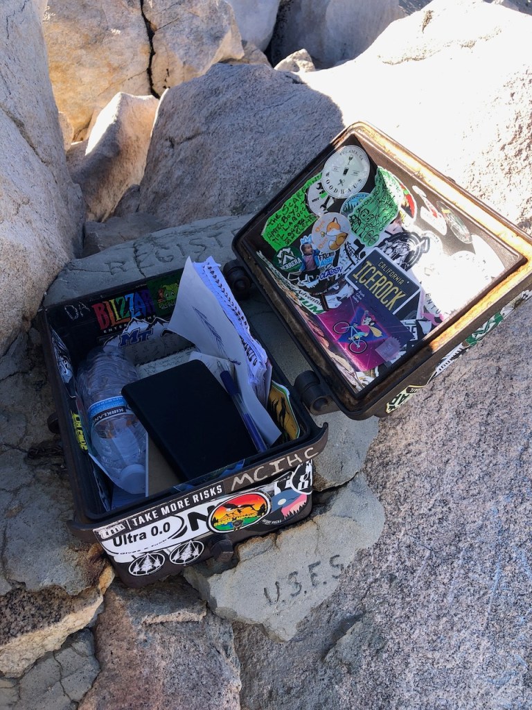 It was 1:20pm when I reached the peak of Mount San Gorgonio. The peak was empty. One group had just left, and two groups had passed me on my way up. The last mile had taken me over an hour. I never felt so relieved to open this box, and sign this register.