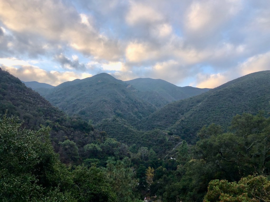 It was close to 7am, as I drove up Santiago Canyon Road toward Silverado Canyon, the mountains rose up majestically, in the backdrop. As I gazed up at them, the clouds circled around, and the sun was just beginning to rise, as I made my way toward the trailhead at Maple Springs, at the end of Silverado Canyon Road.