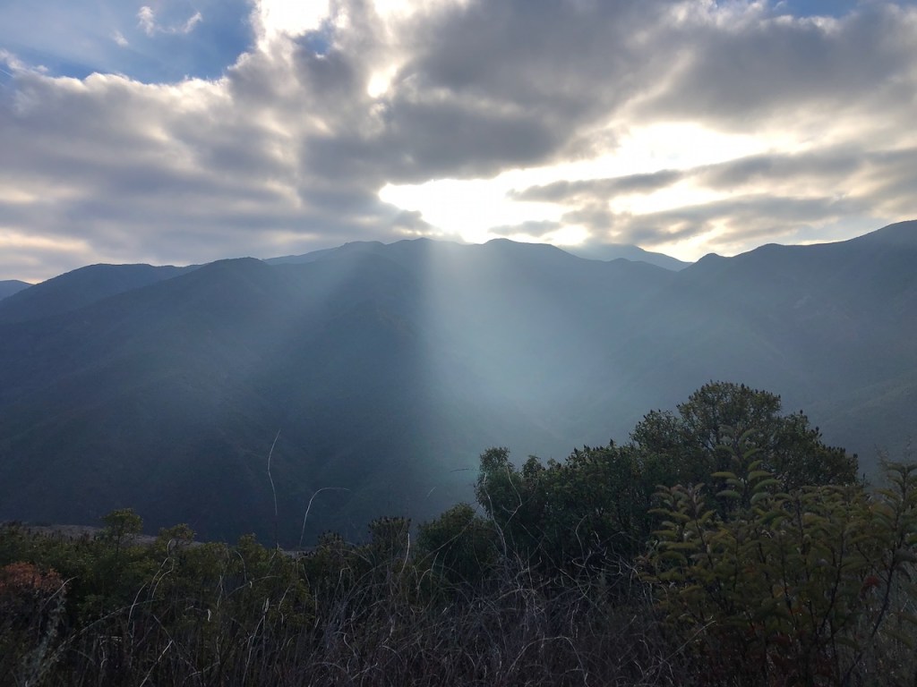 As we climbed out of Silverado Canyon, mist was hovering about in the air, and the scenery was quite dramatic from the start. The rays of the sun pierced through the clouds ever so softly.