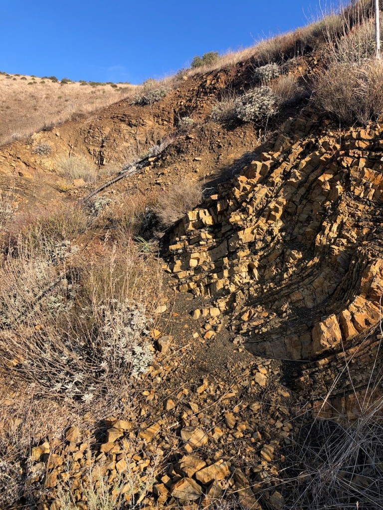 Off to my left I noticed a narrow trail leading into a steep rugged canyon. Based on my Alltrails map, it was Ladd Canyon, and there was a spring there. I had heard about this canyon before, because a naturalist and hiking guide that I know had lived there, at least until the Holy Fire swept through, years ago. I really didn’t know much more about this one, nor did I hear any water flowing, so I imagined there wasn’t a waterfall there. If there was, it was flowing very small.