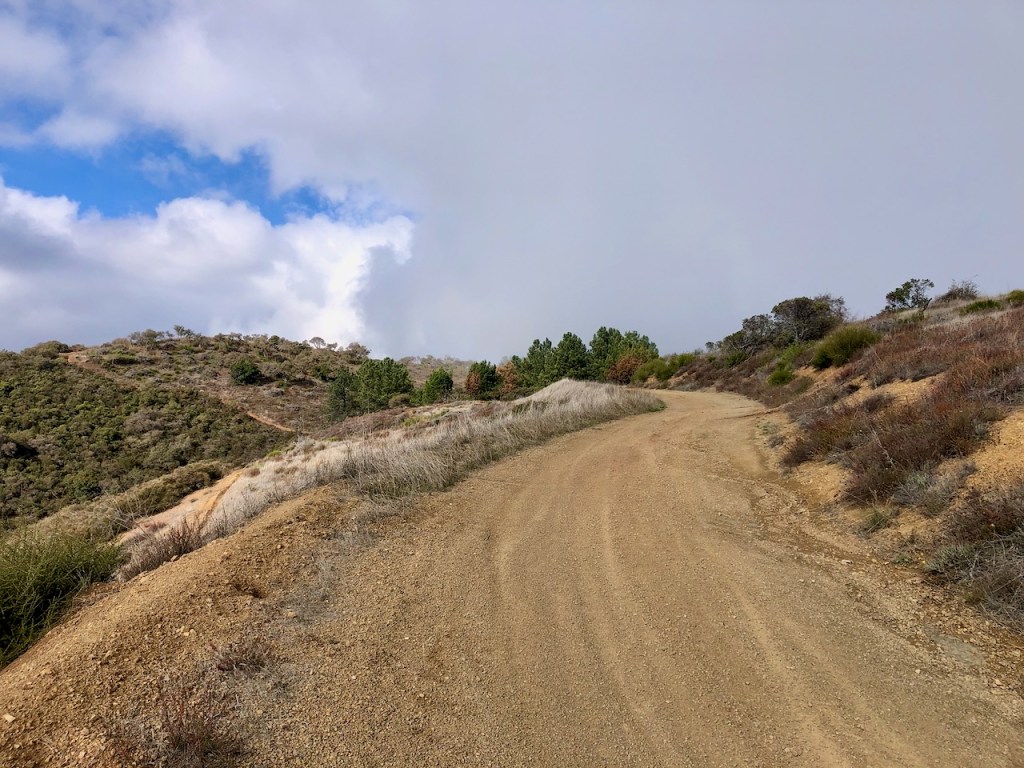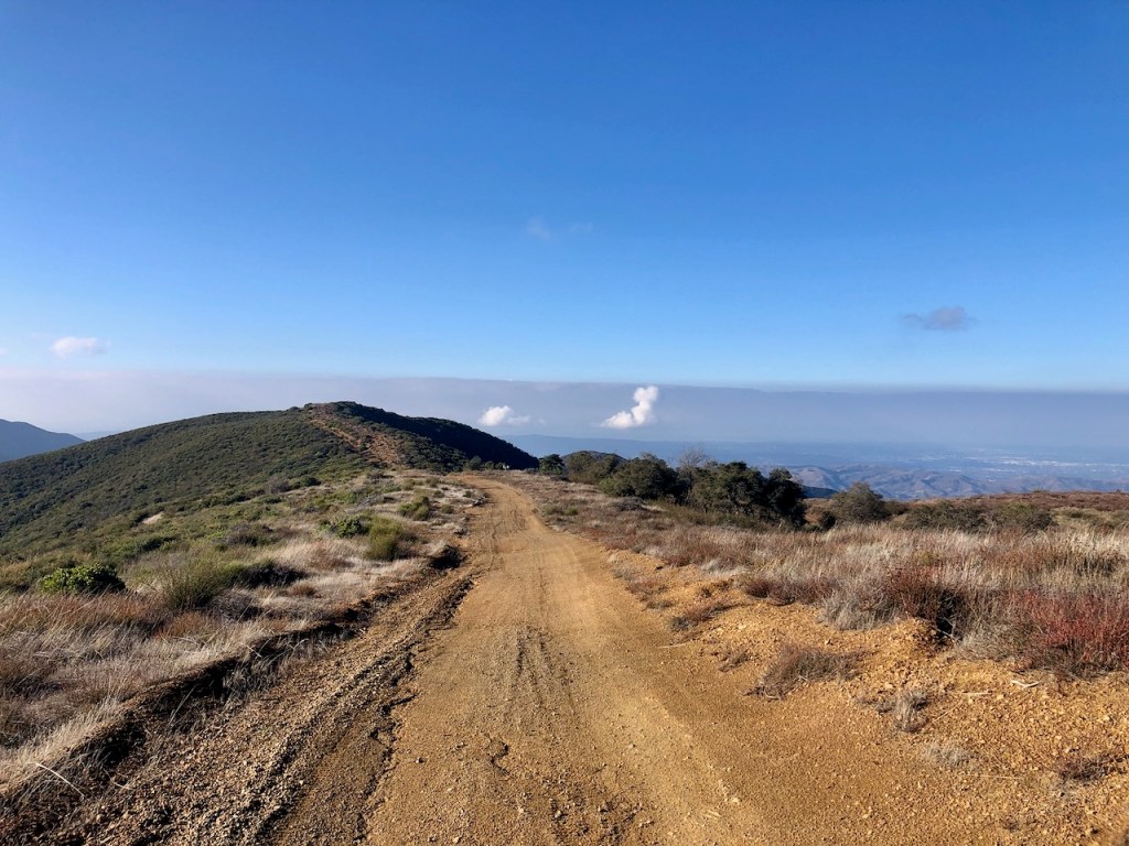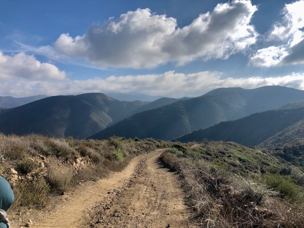 After about 3 miles of climbing, we reached a plateau of sorts, and the trail widened. It also started to flatten out a bit, as we entered an even wider stretch of fire road. All the ridges here in the Santa Anas have a fire road, and much of it is off limits to vehicle traffic, reserved for firefighters, maintaining fire lines. This mountain area experiences fires frequently, and this wide road is one of the main ways firefighters access this wilderness with their fire trucks.